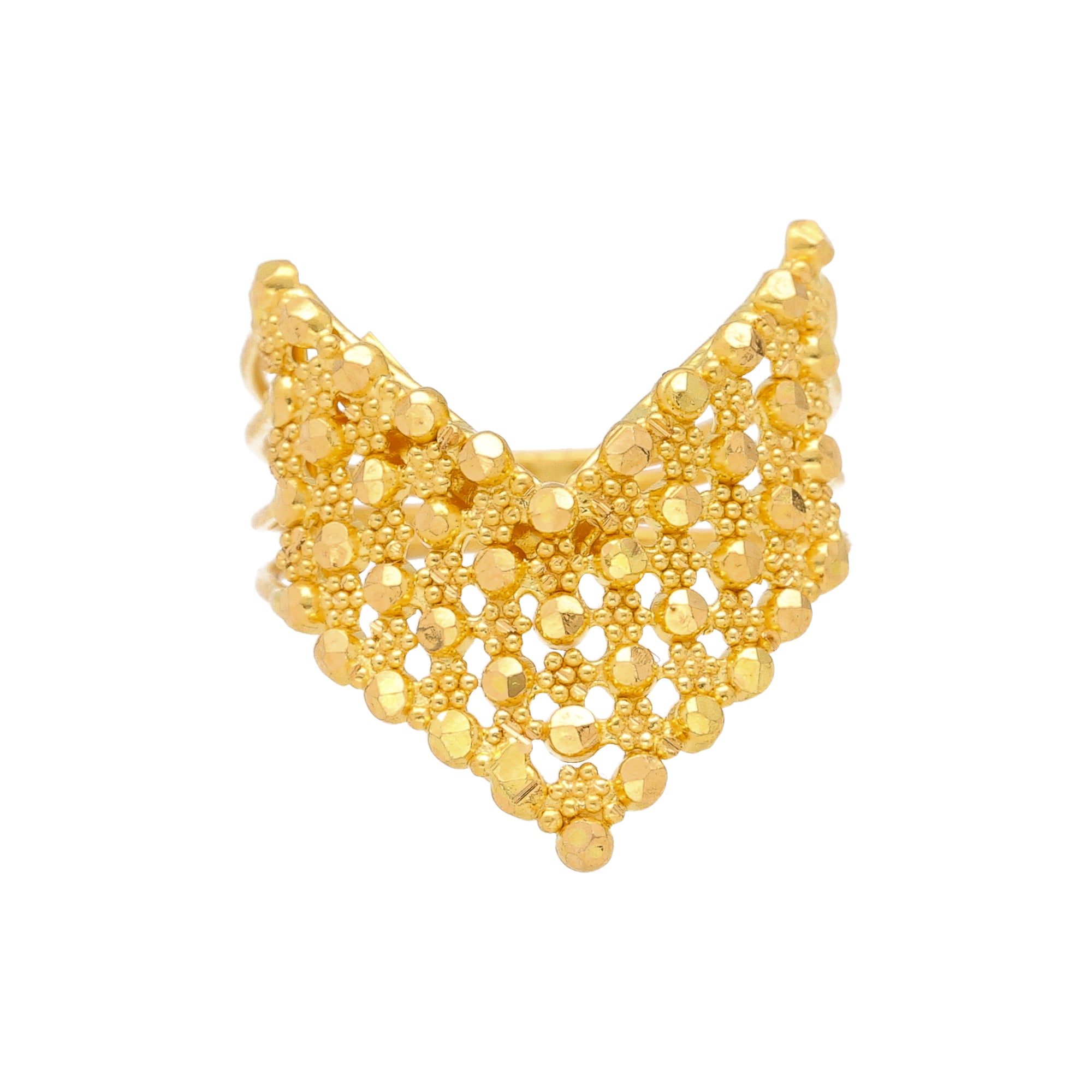 22K Yellow Gold Beaded "V" Ring (4gm)
