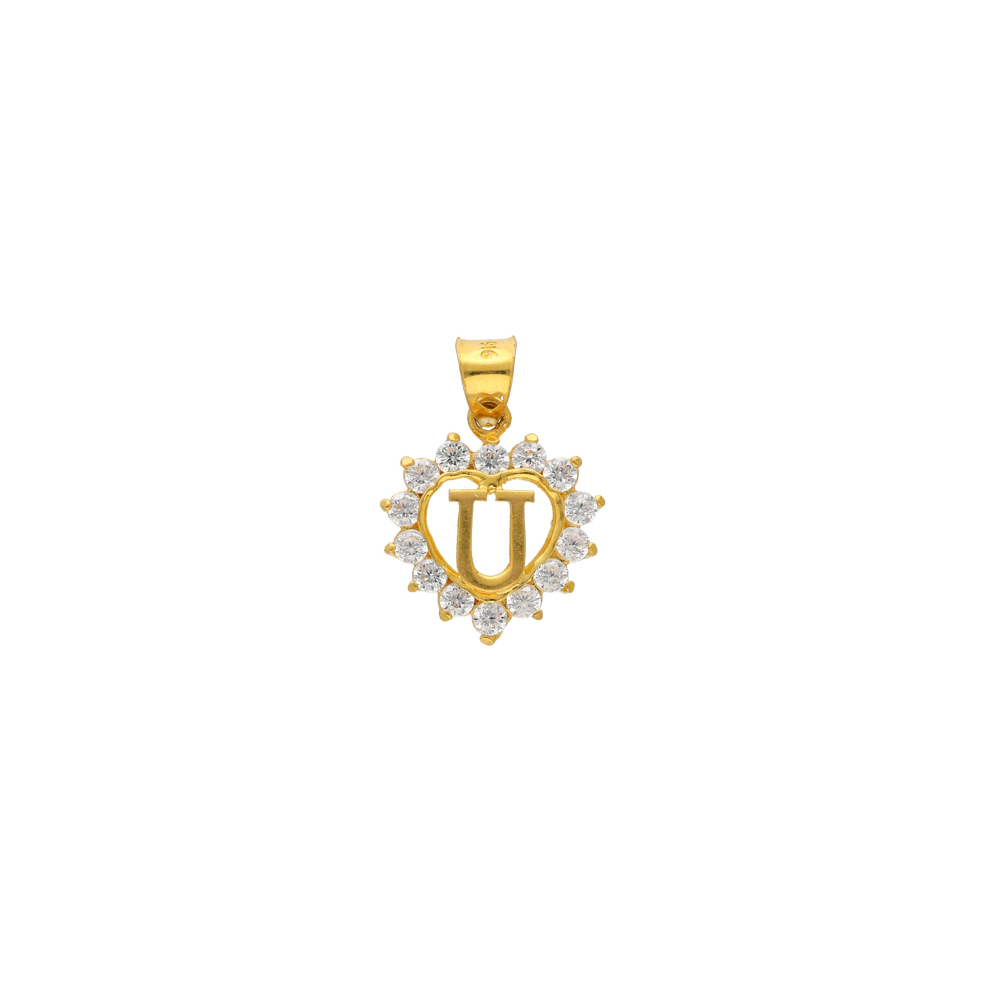 22K Yellow Gold & CZ Letter U Heart Shaped Pendant (1.6gm)