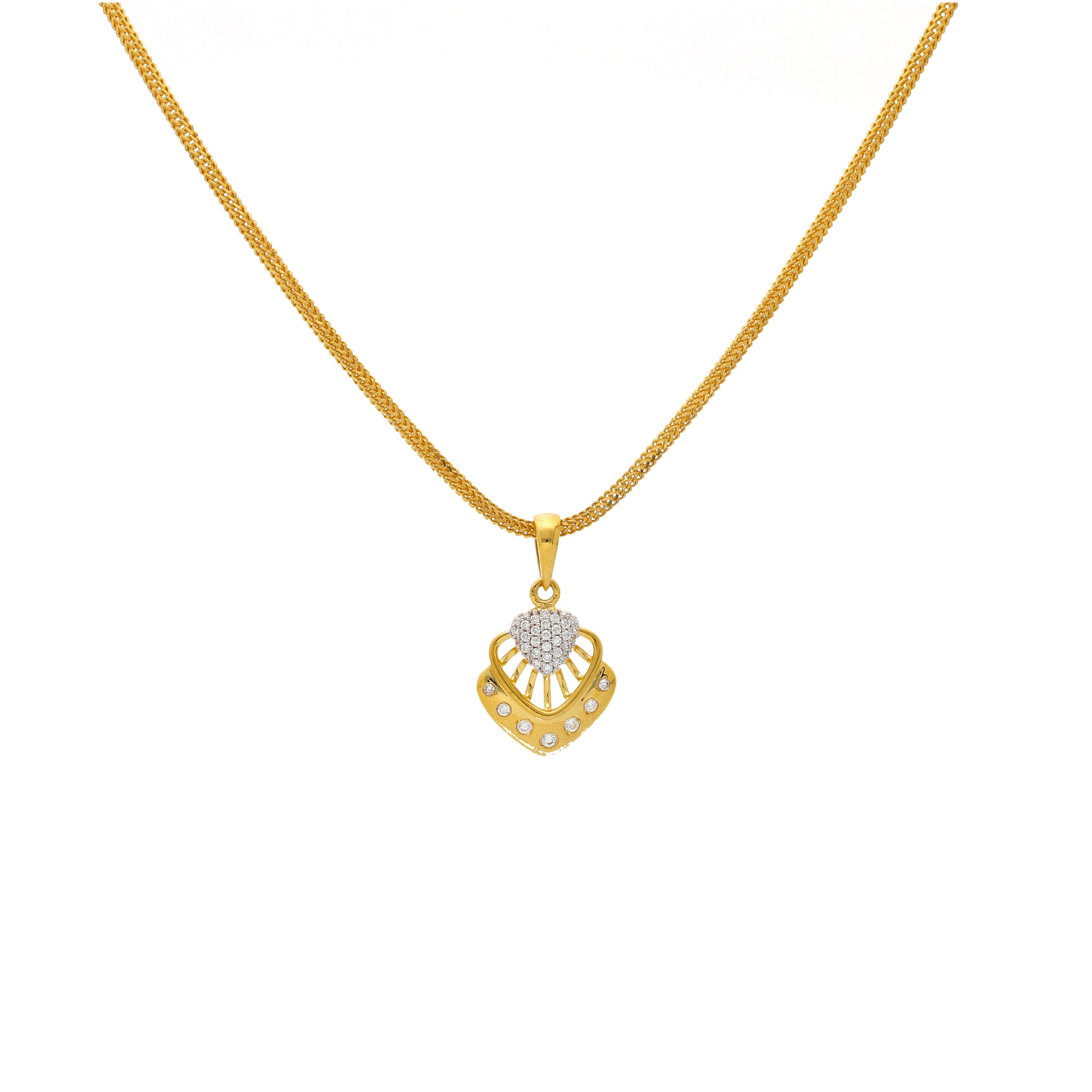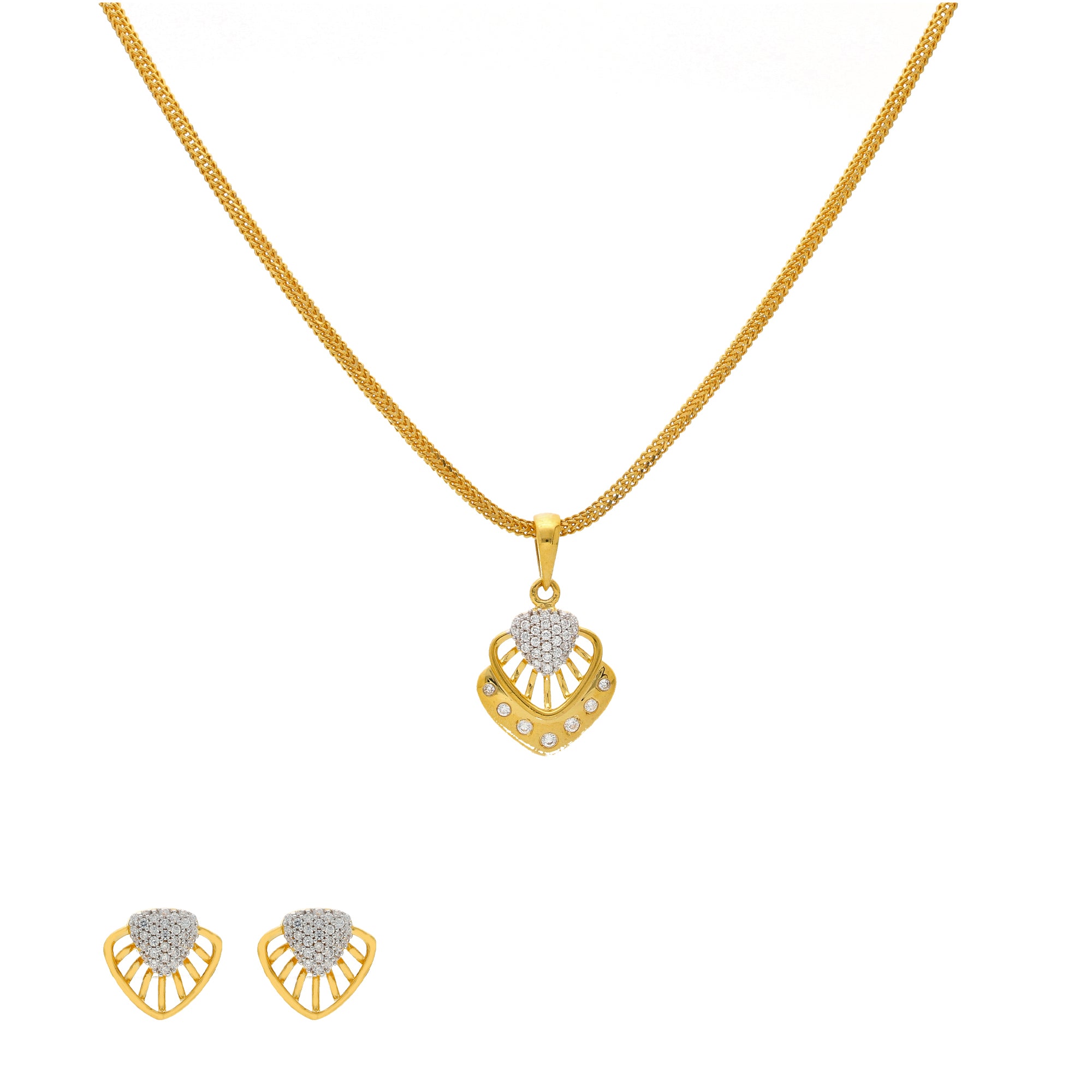 22K Yellow Gold & CZ Pendant Necklace Set (10.1gm)