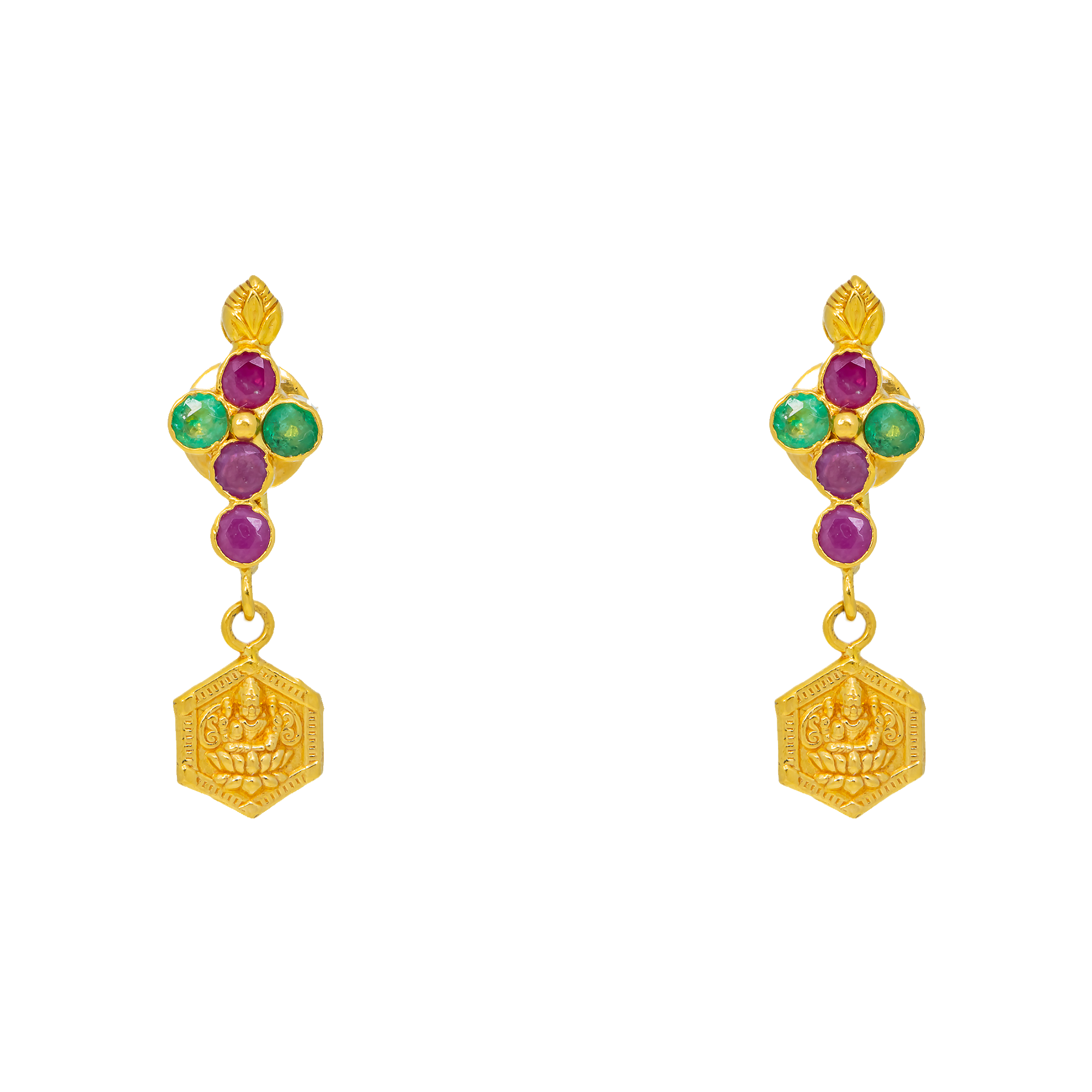 22K Yellow Gold, Emerald & Ruby Earrings (4 grams)