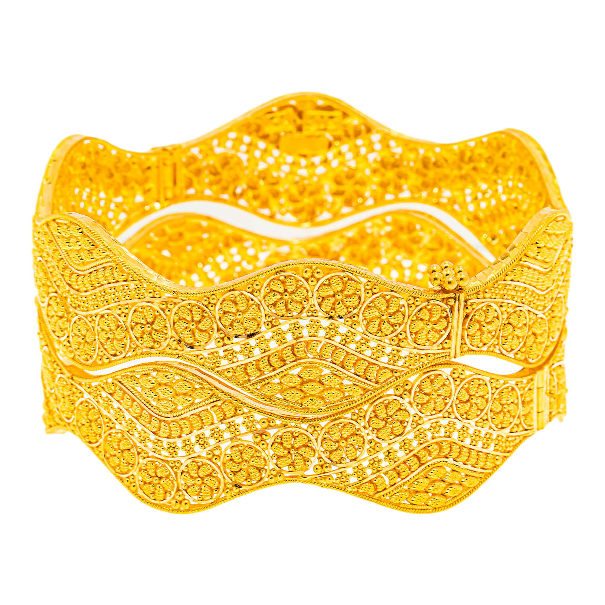22K Yellow Gold Filigree Bangle Set of 2 (48.4 grams)