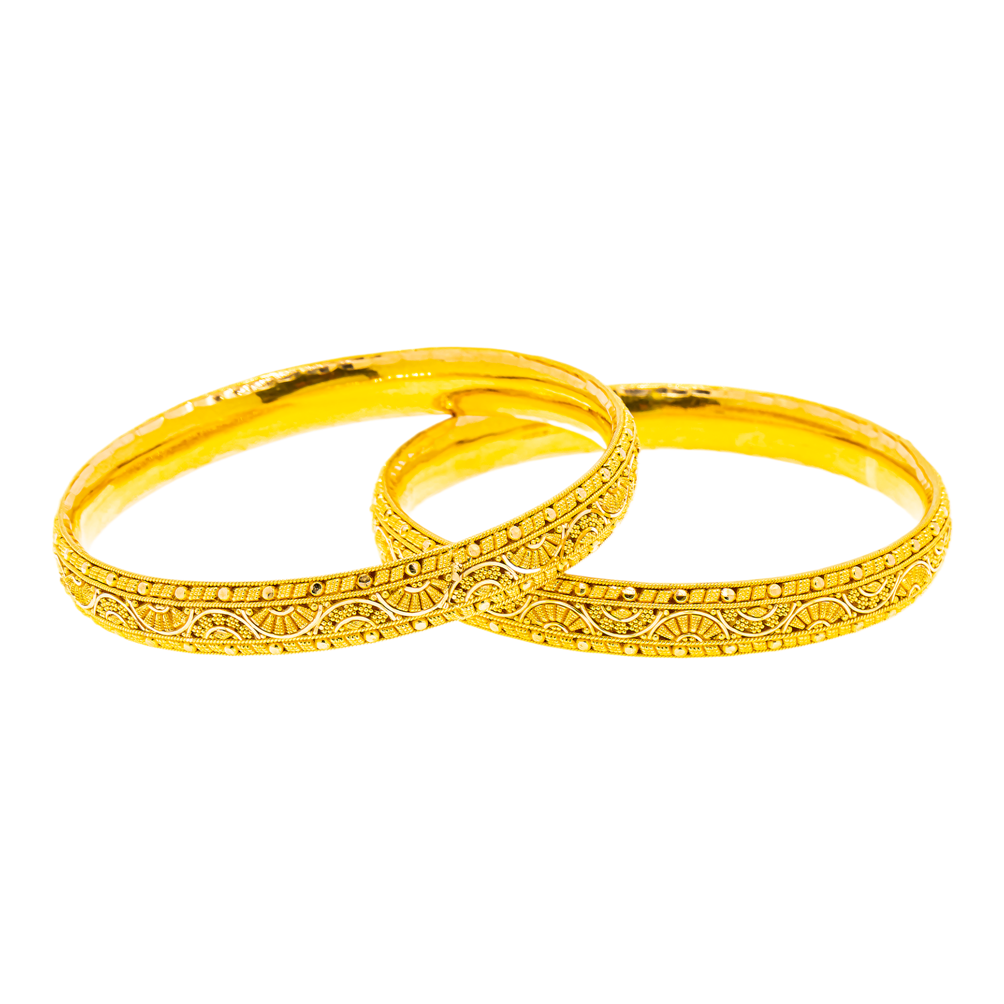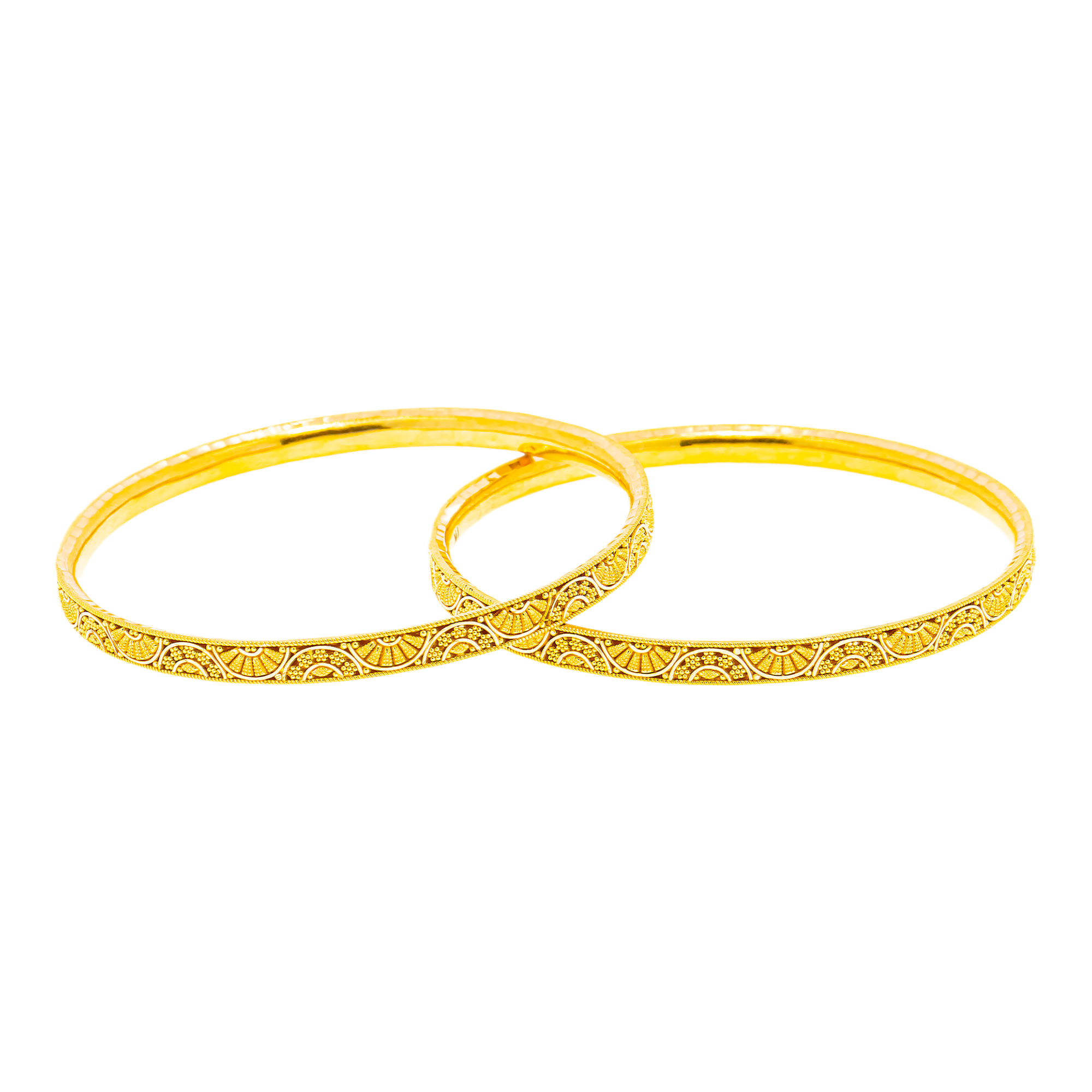 22K Yellow Gold Filigree Bangle Set of 2 (69.1 grams)