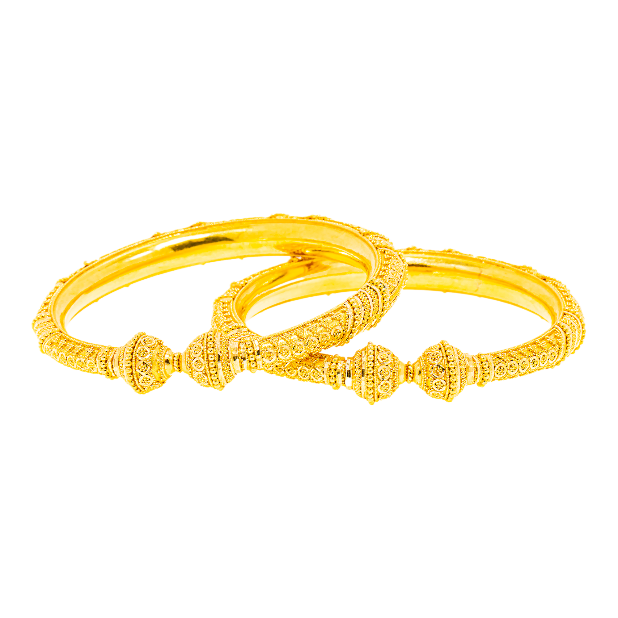 22K Yellow Gold Filigree Bangle Set of 2 (76 grams)