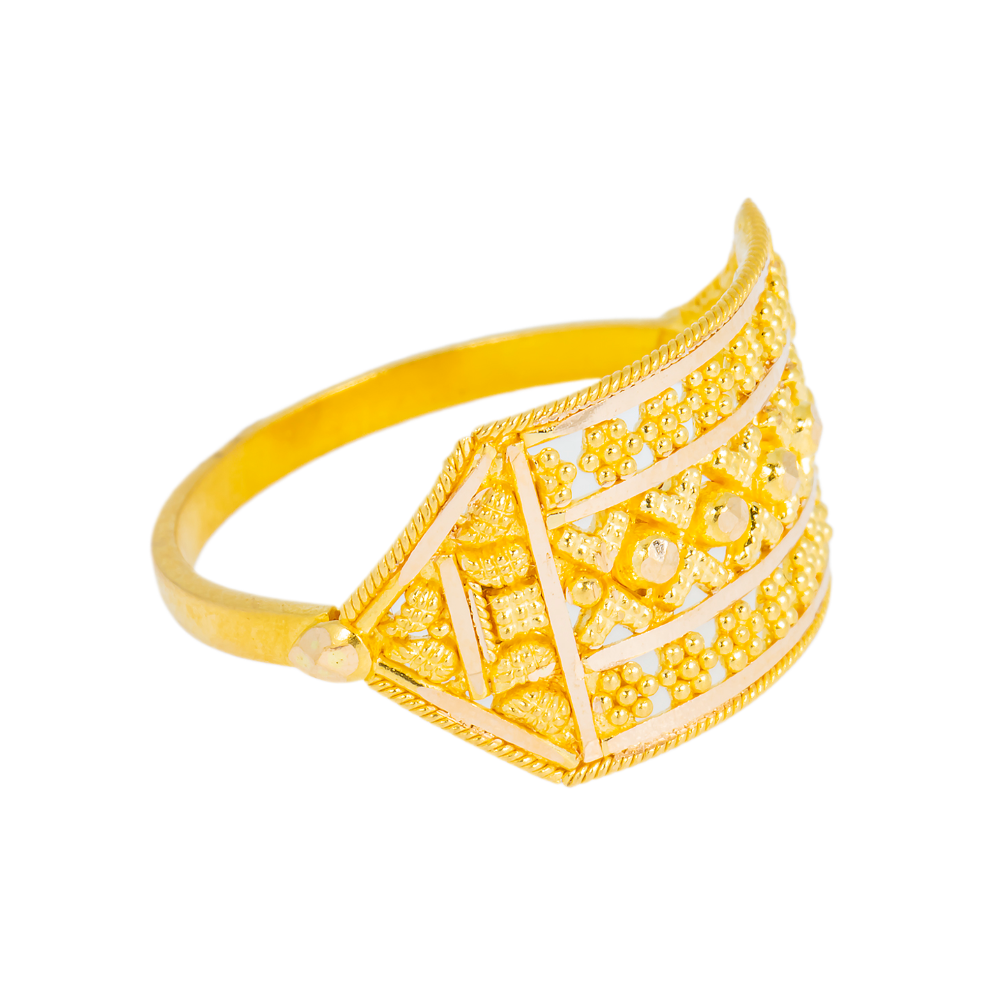 Delicate filigree artistry adorns this 22k gold ring by Virani Jewelers, creating fine gold jewelry that celebrates timeless Indian elegance.