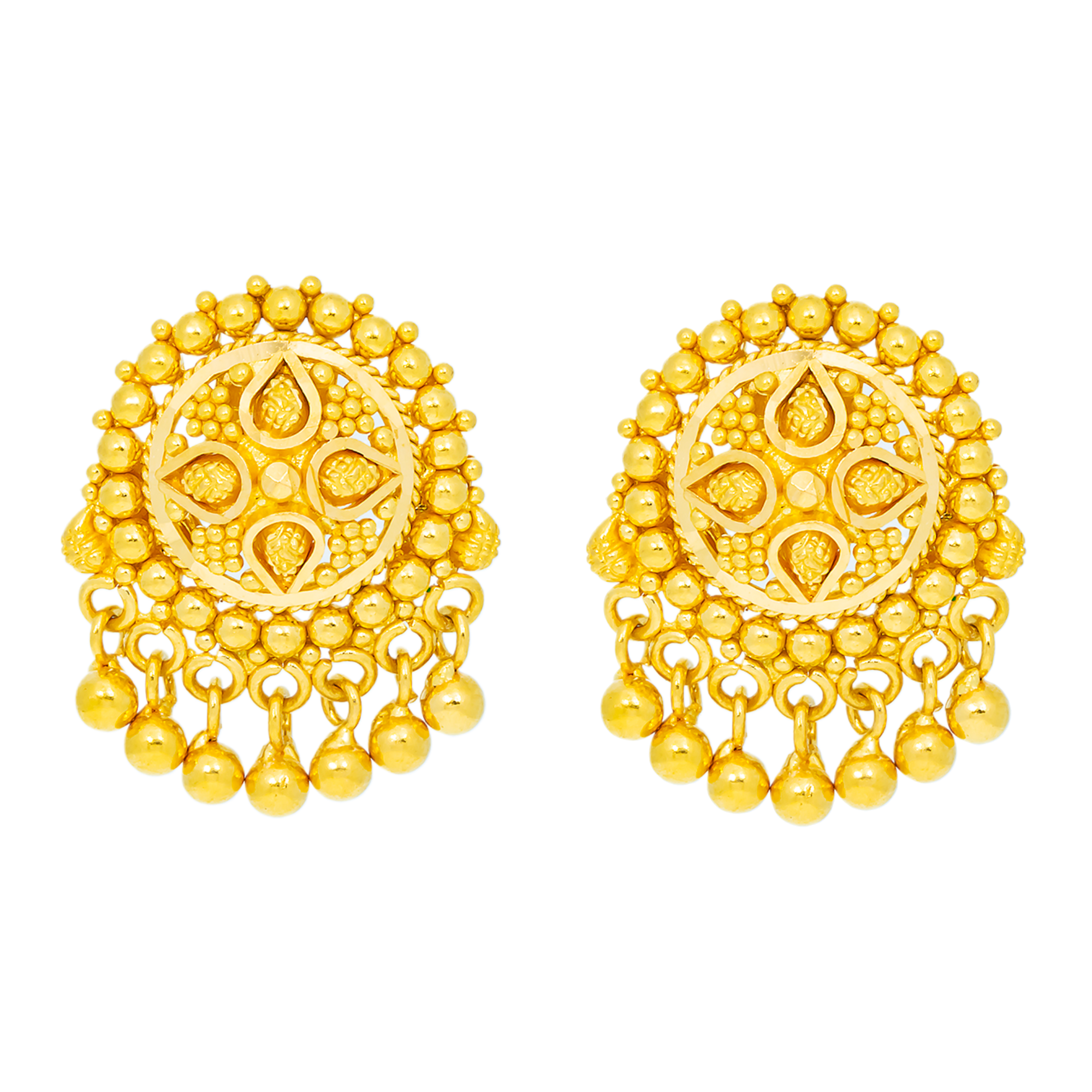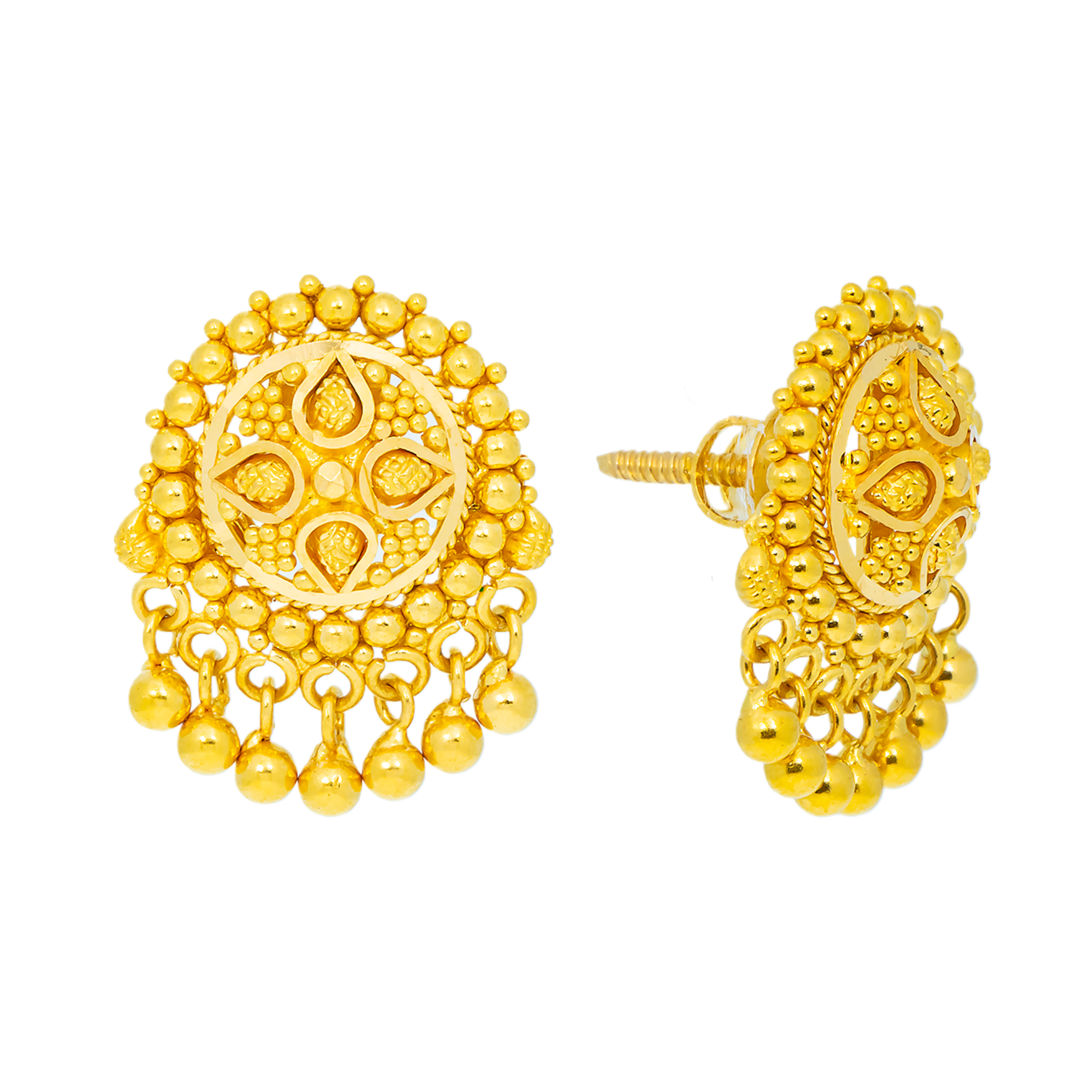 22K Yellow Gold Filigree Stud Earrings (4.2 grams)