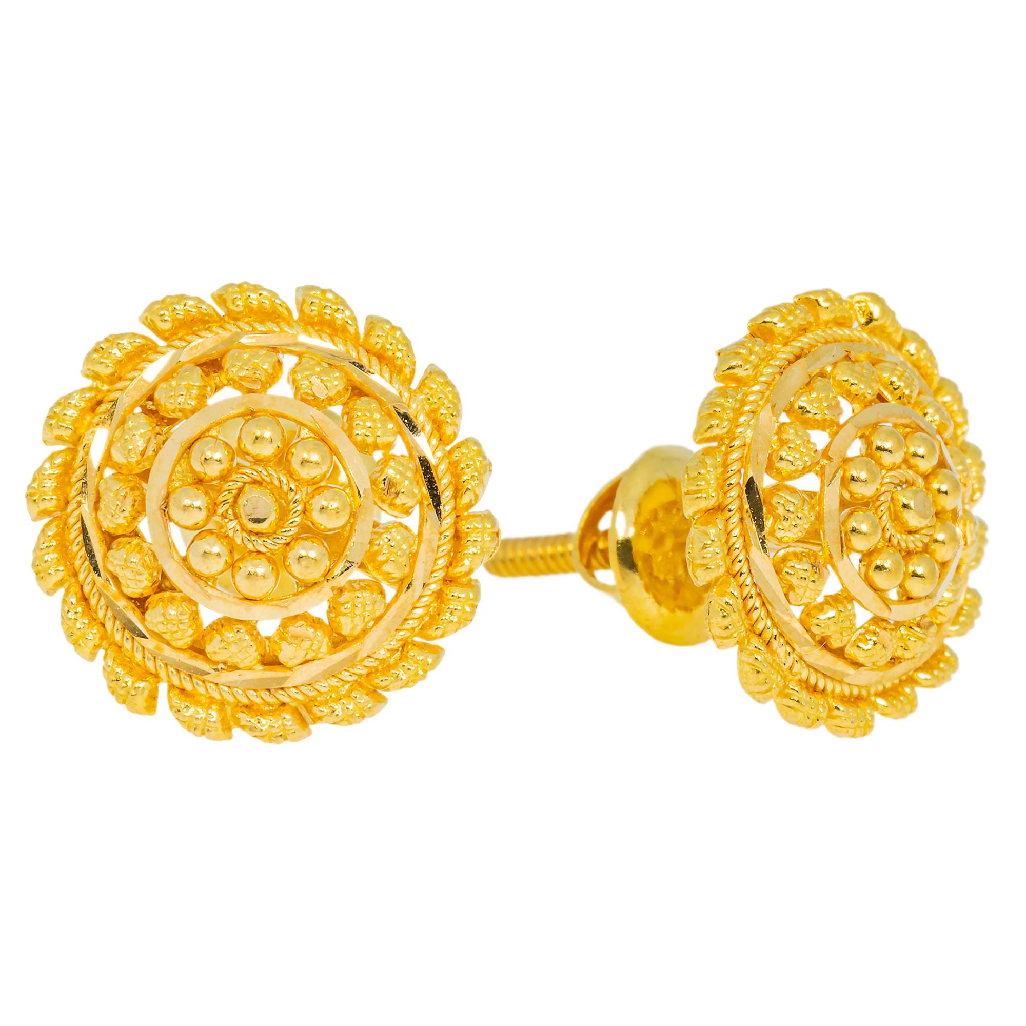 22K Yellow Gold Filigree Stud Earrings (4 grams)