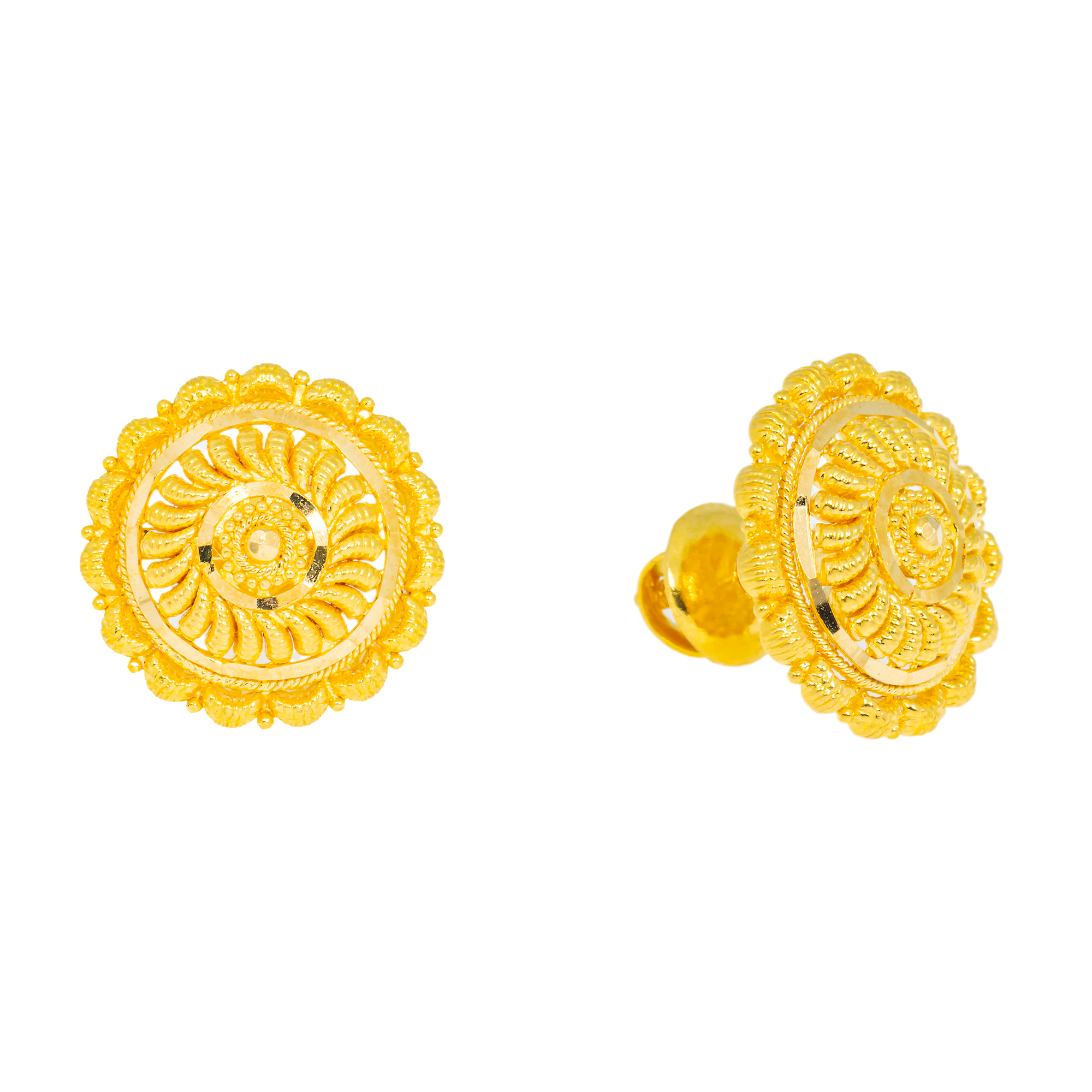 22K Yellow Gold Filigree Stud Earrings (5.4 grams)