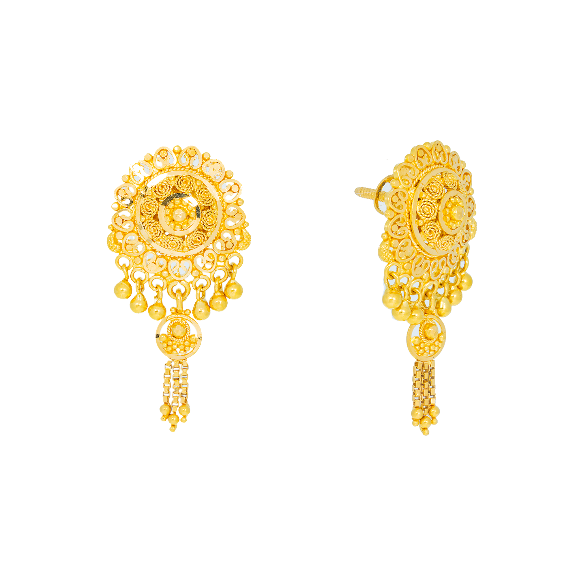 22K Yellow Gold Filigree Stud Earrings (5.8 grams)