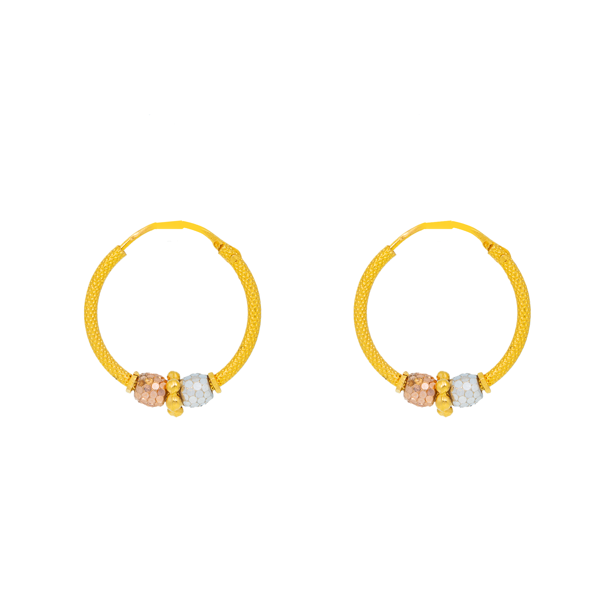 | These 22K yellow gold hoop earrings deliver clean lines, warm shine, and refined elegance. Their versatile appeal makes them ideal for everyday wear, formal events, and gift-giving. They are an excellent pair of Indian gold earrings for every occasion. Features • 22K yellow gold Specifications • Minimum Width - 1 millimeter • Maximum Width - 20.5 millimeters • Length - 0.8 inch • Weight - 2.8 grams |
