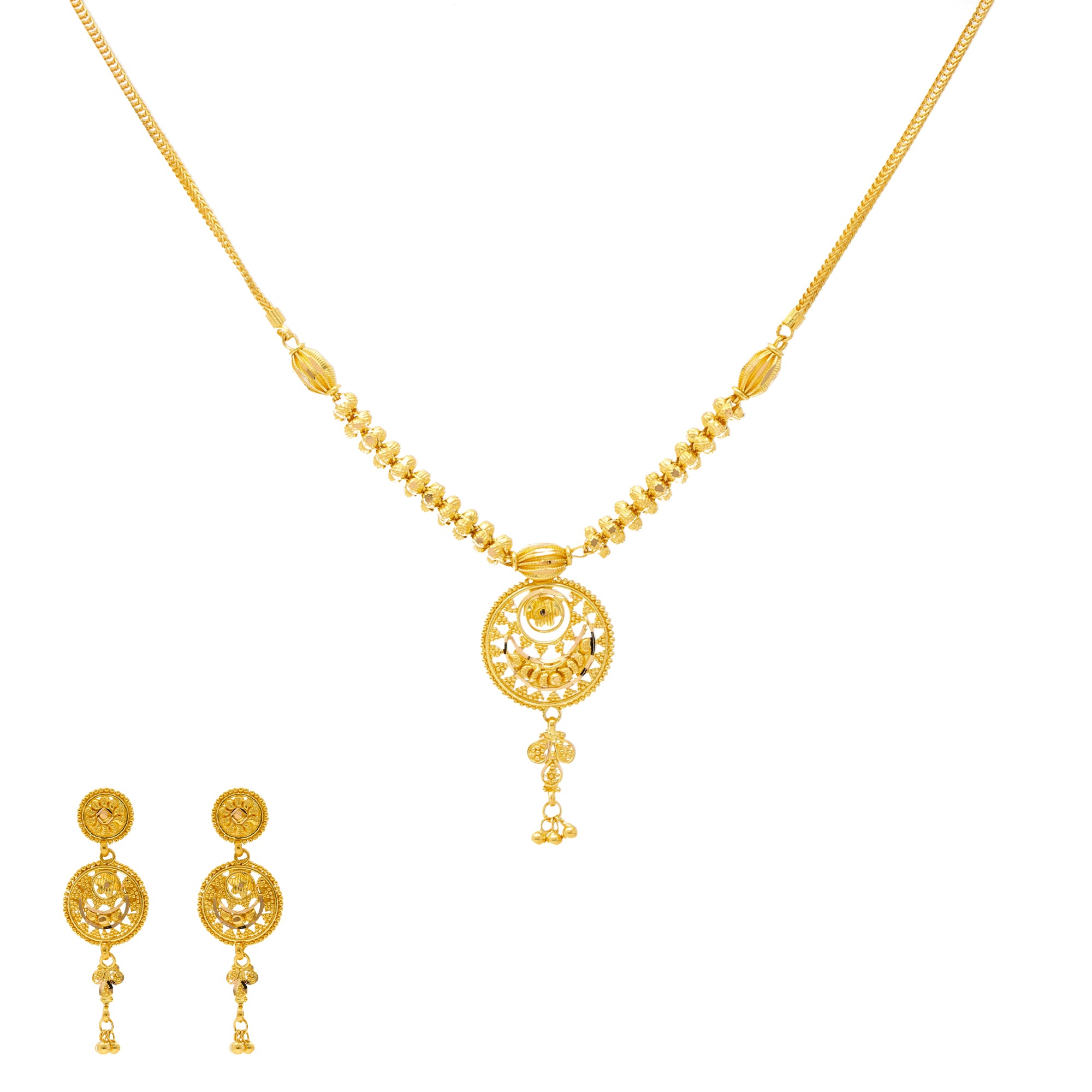This sophisticated 22 karat yellow gold jewelry set for women and girls has a timeless style and appeal.