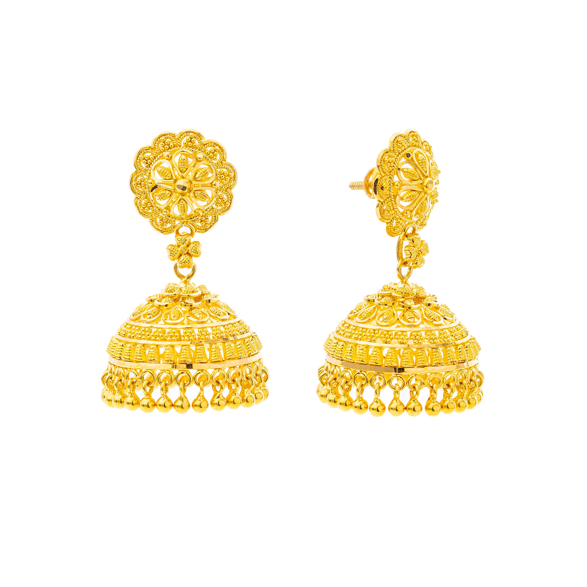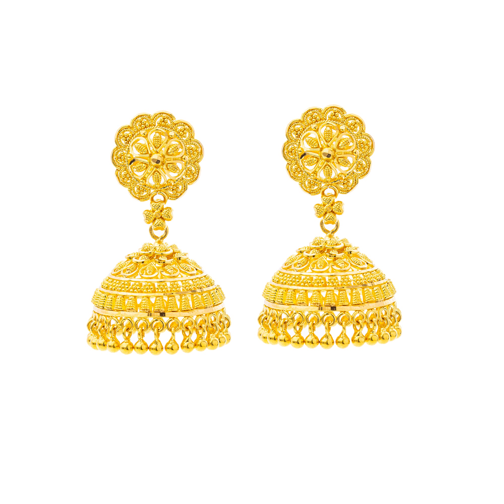 22K Yellow Gold Jhumki Earrings (16.1gm)
