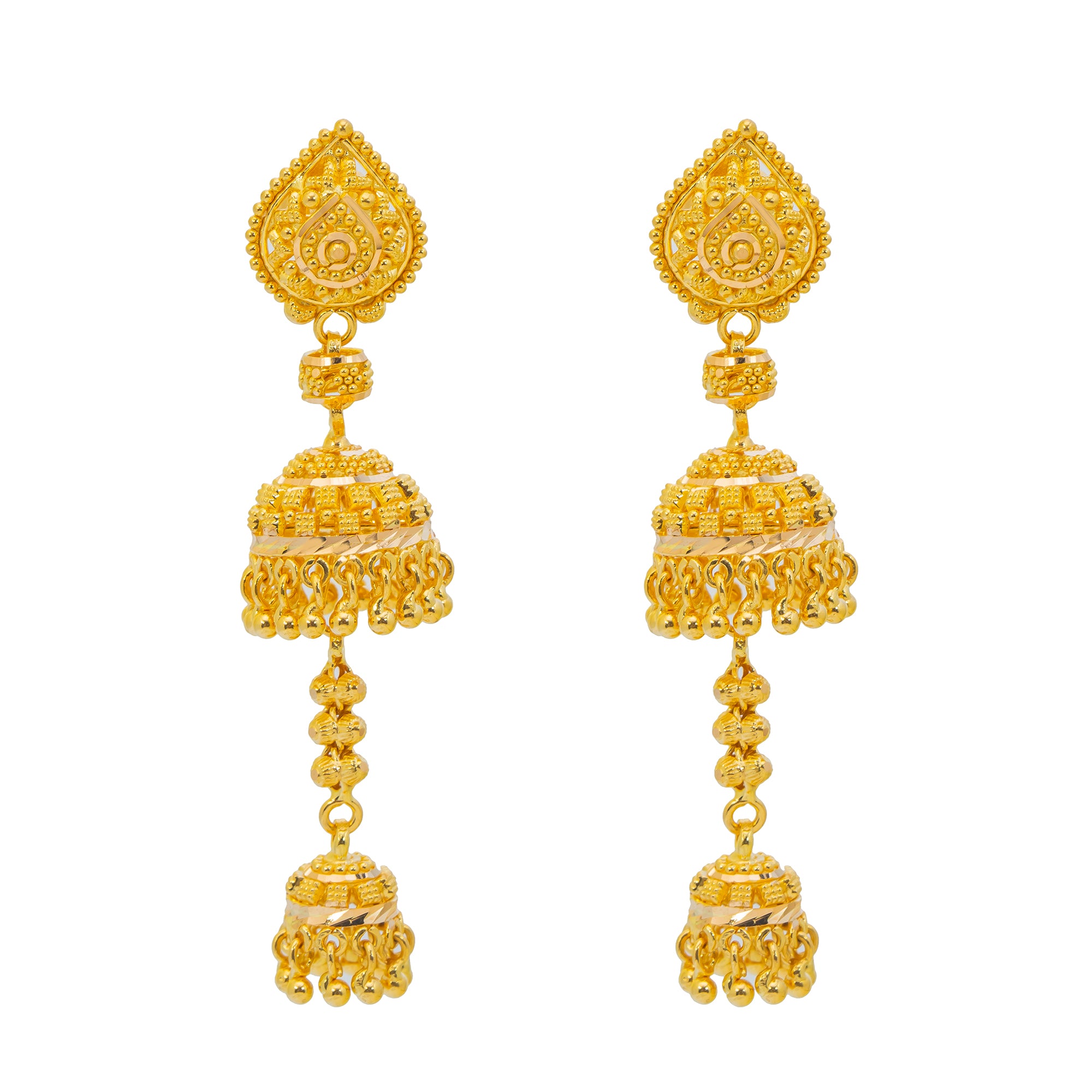 22K Yellow Gold Jhumki Jewelry Set (80.5gm)