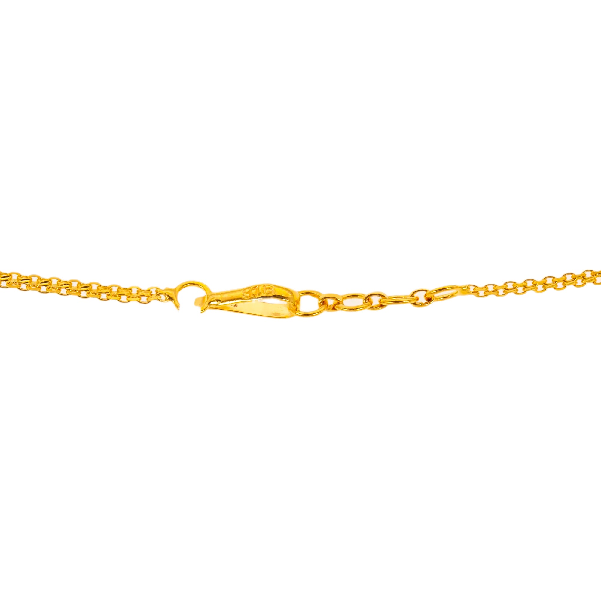 This 22k yellow gold kasu necklace has a minimal and elegant appeal that any bride would love. Layer it with other 22k yellow gold bridal jewelry from Virani or let it stand alone for a simple and classy look.