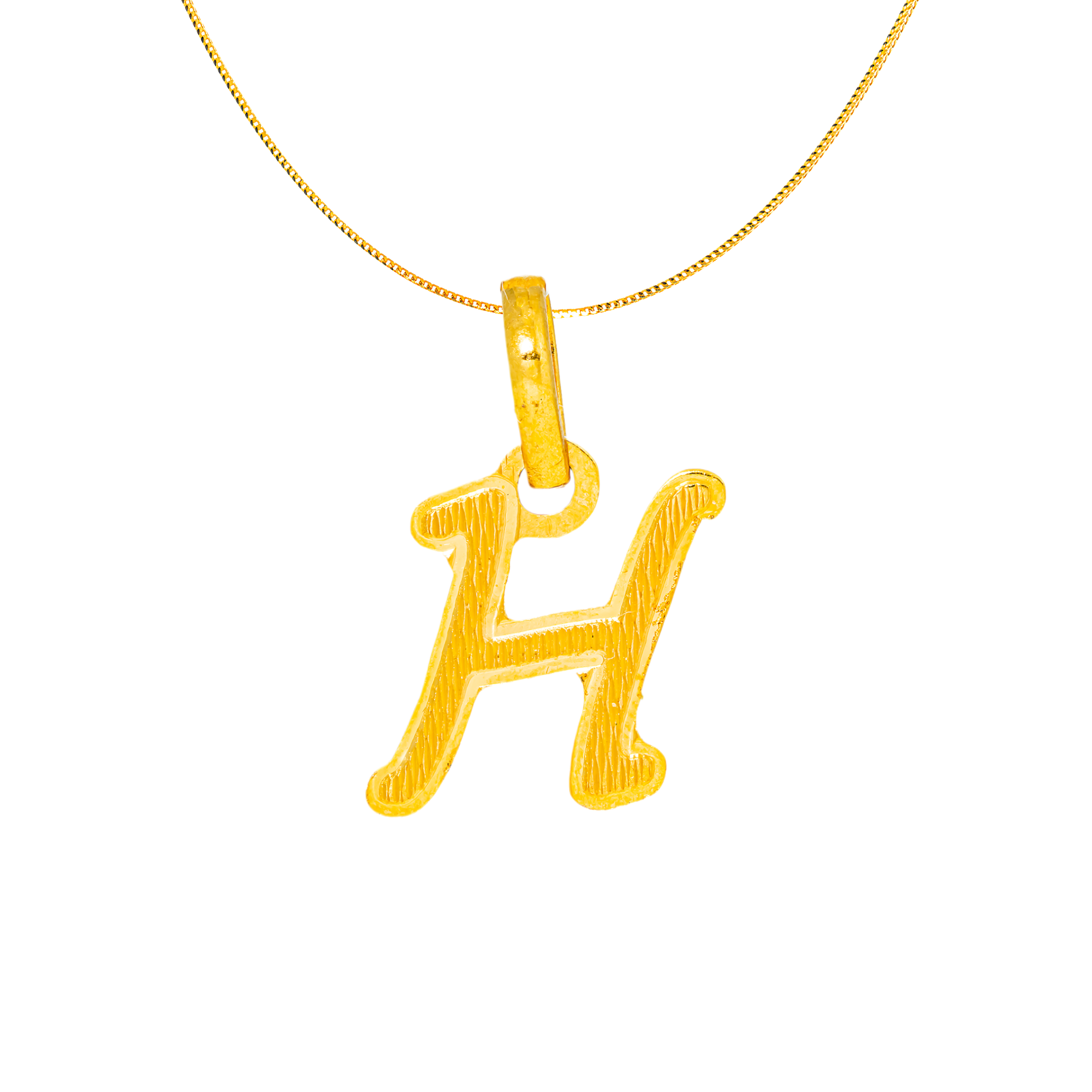 Crafted in radiant 22K yellow gold, this letter H initial pendant offers simple elegance with a warm, luminous finish.