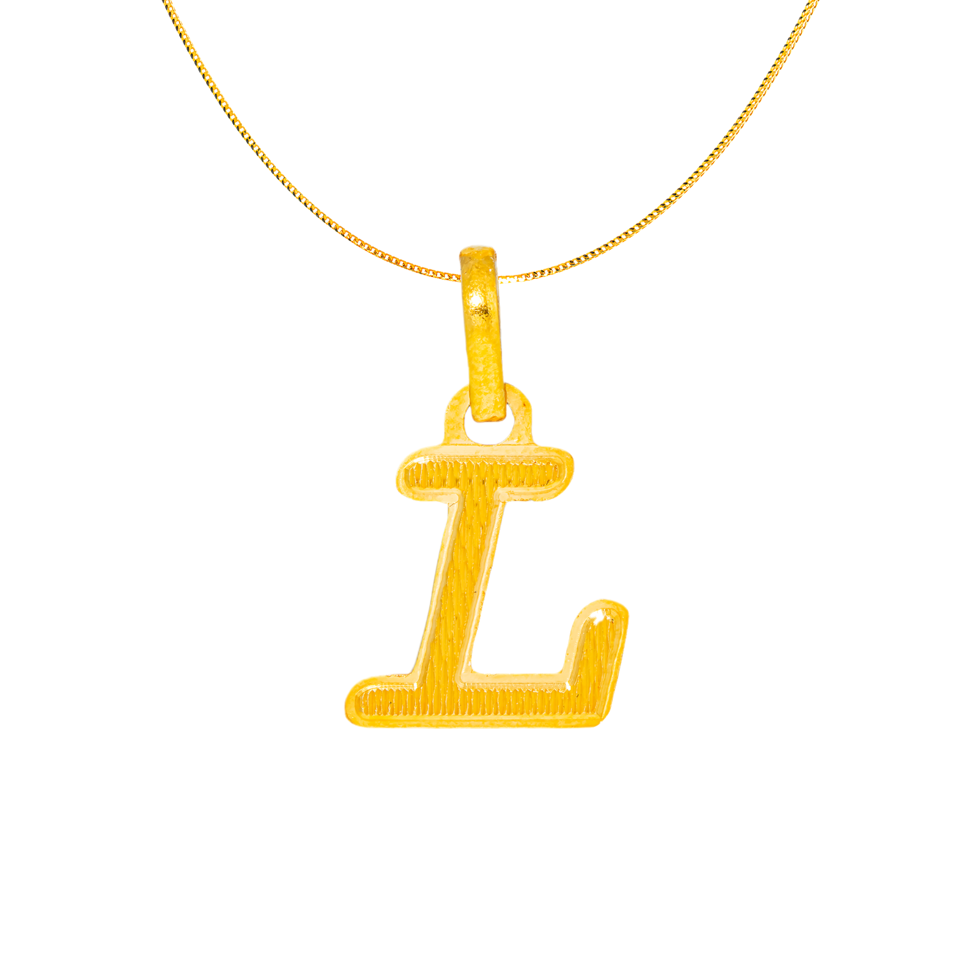 Crafted for timeless appeal, this classic 22k gold pendant with letter "l" initial pairs meaningful design with exquisite texture, creating a versatile piece of gold jewelry that shines from day to night.