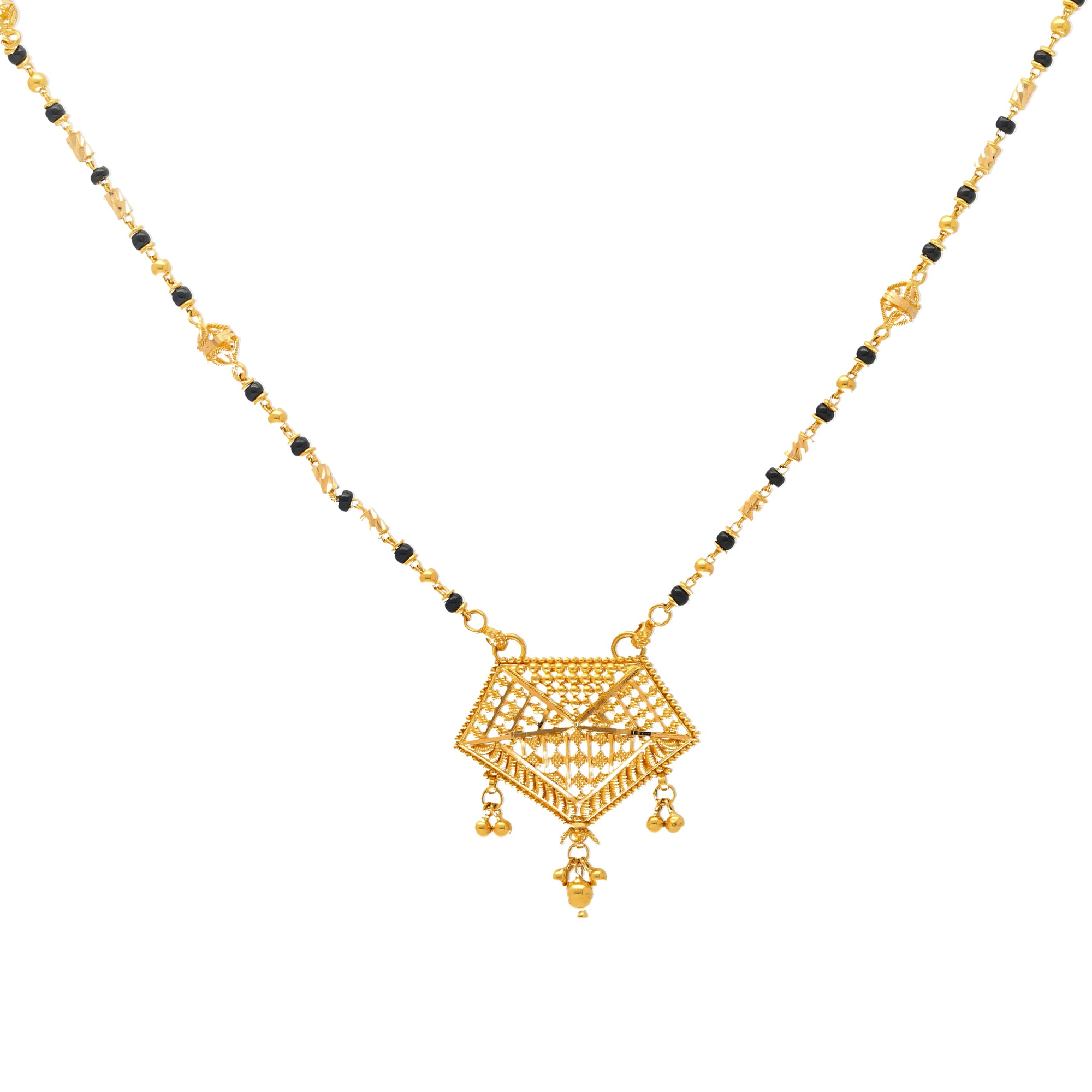 Whether you're getting married or want to dress up your everyday attire with a symbol of your recent nuptials, our 22K gold chain Mangalsutra necklaces are the perfect addition to your wardrobe. The black beads and complementing 22k yellow gold make these pieces elegantly subtle and easy to pair with all your favorite ensembles. Explore our website to discover more stunning 22K gold chain necklaces and more!