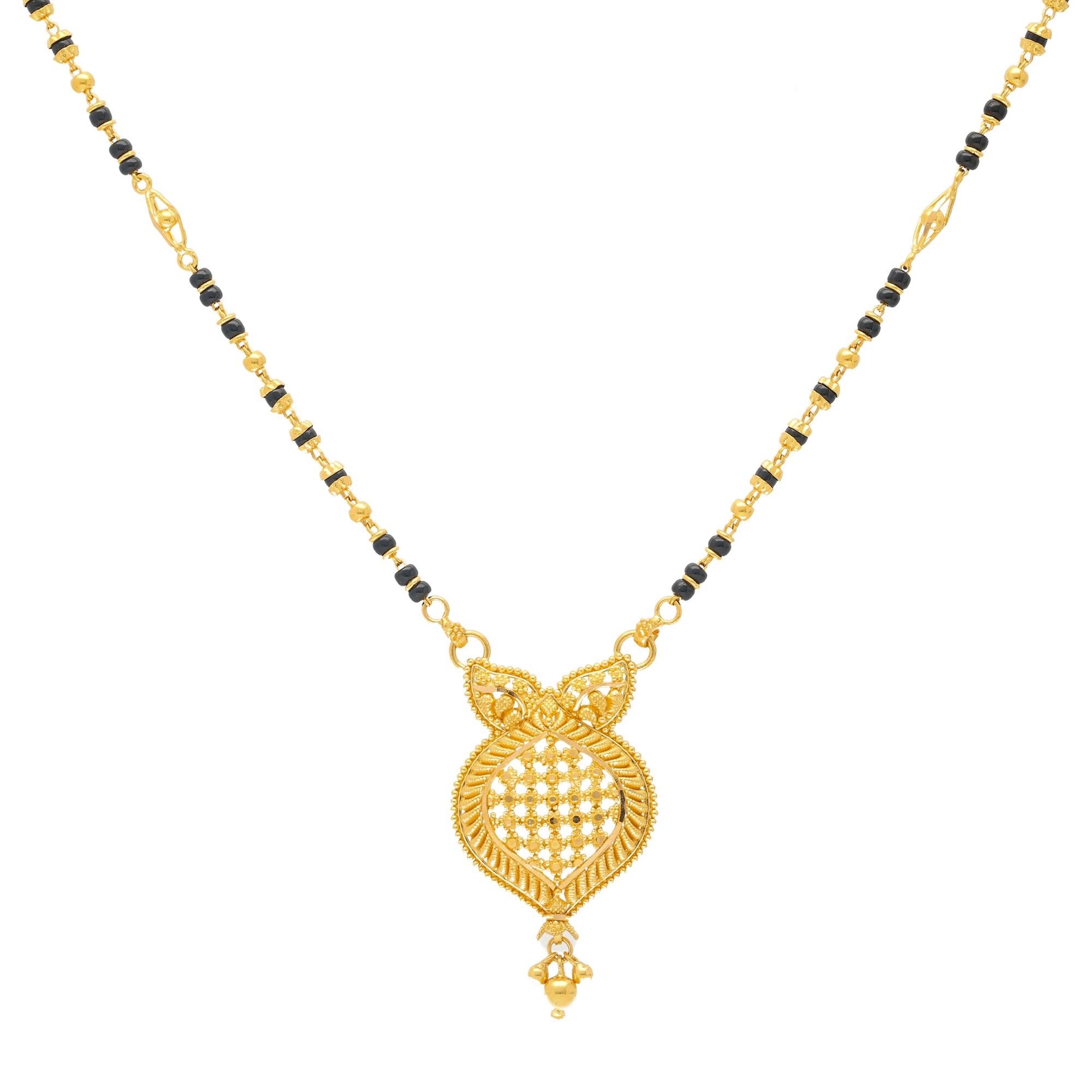 Whether you're getting married or want to dress up your everyday attire with a symbol of your recent nuptials, our 22K gold chain Mangalsutra necklaces are the perfect addition to your wardrobe. The black beads and complementing 22k yellow gold make these pieces elegantly subtle and easy to pair with all your favorite ensembles. Explore our website to discover more stunning 22K gold chain necklaces and more!