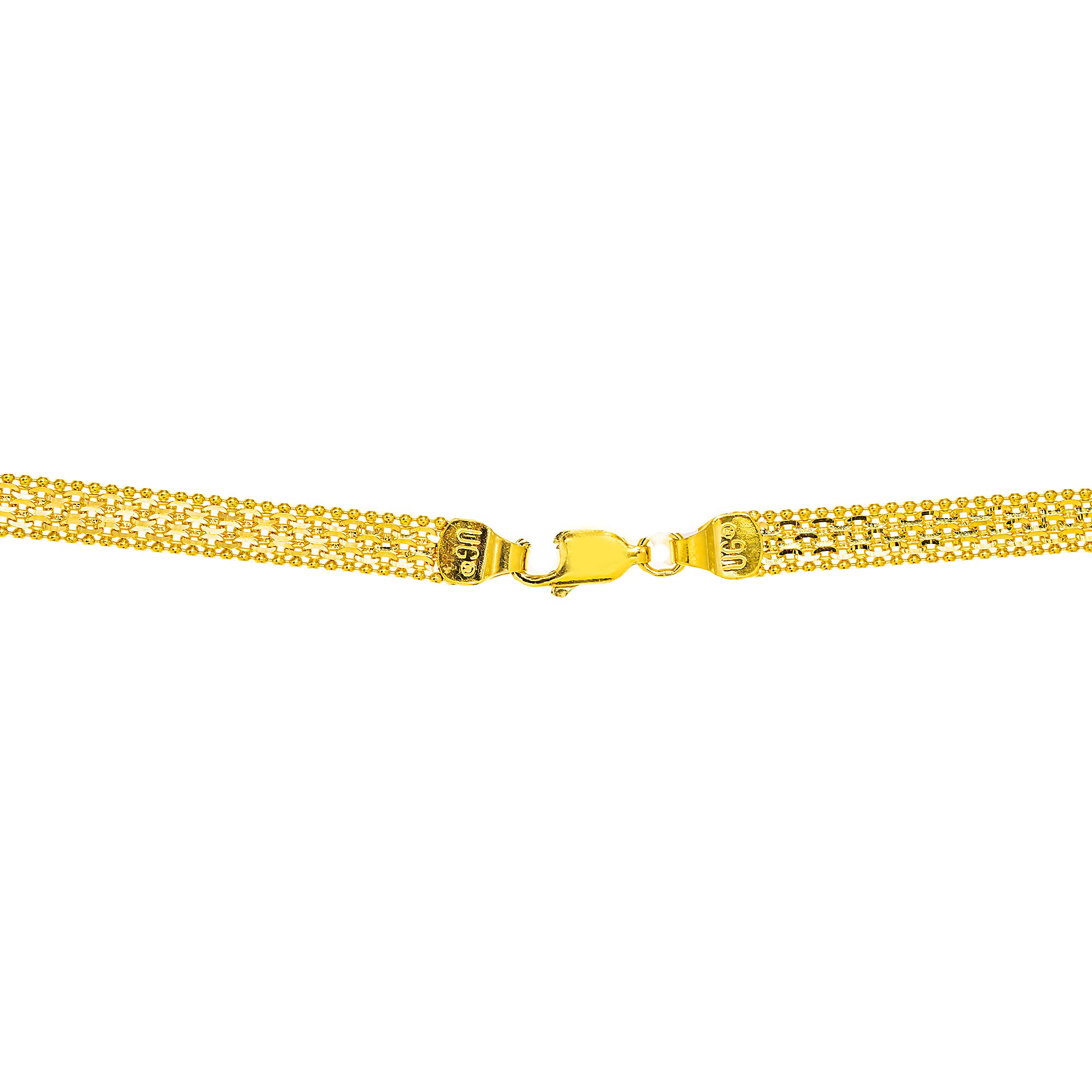 | Elevate your everyday style with this classic 22K yellow gold chain from Virani Jewelers. Crafted in pure 22k gold, the chain’s sleek and timeless design reflects the enduring beauty of Indian gold jewelry. Whether worn as a subtle statement on its own or paired with a favorite pendant, this fine gold jewelry piece offers effortless sophistication and lasting value designed to be treasured for years to come. Features • 22K yellow gold Specifications • Minimum Width - 1 millimeter • Maximum Width - 5 millimeters • Length - 22 inches • Weight - 17.2 grams |