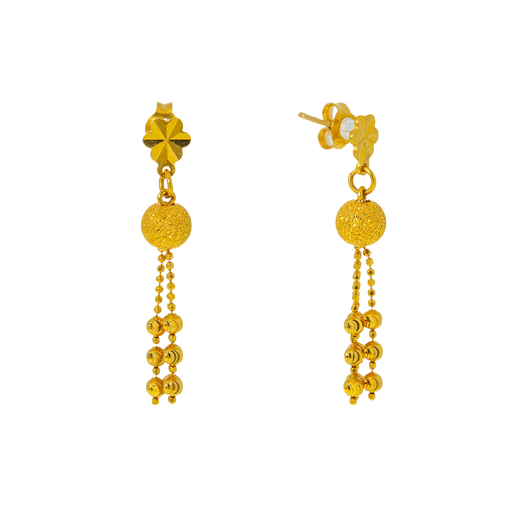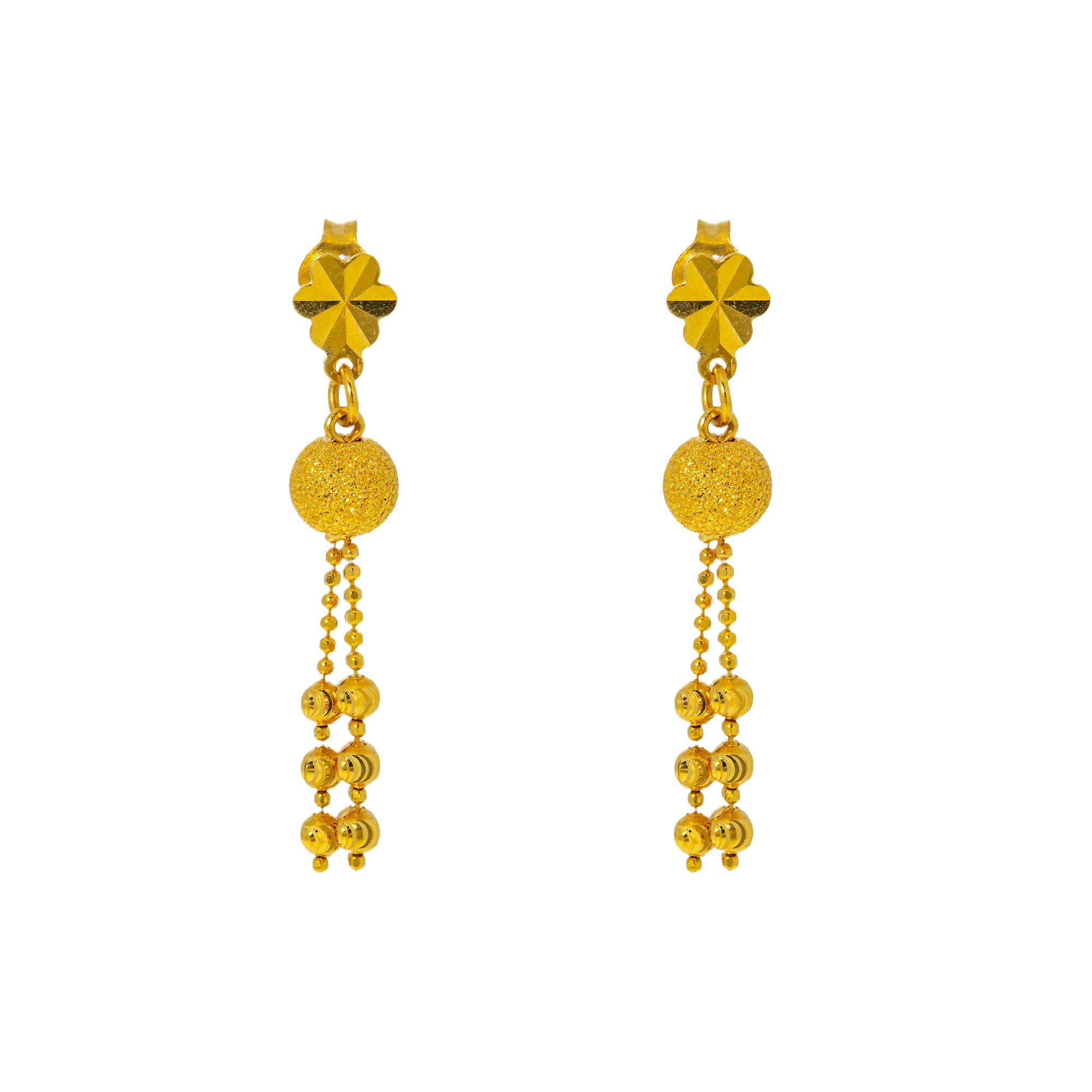 | This 22k yellow gold necklace set radiates timeless charm with its intricate beading and detailed work. Crafted entirely of pure yellow gold, it’s an elegant expression of Indian gold jewelry. Features • 22K yellow gold Necklace Specifications • Minimum Width - 1 millimeter • Maximum Width - 13 millimeters • Length - 18 inches Earring Specifications • Minimum Width - 1 millimeter • Maximum Width - 6 millimeters • Length - 1.5 inches This necklace and earring set has a combined weight of 21.4 grams. |