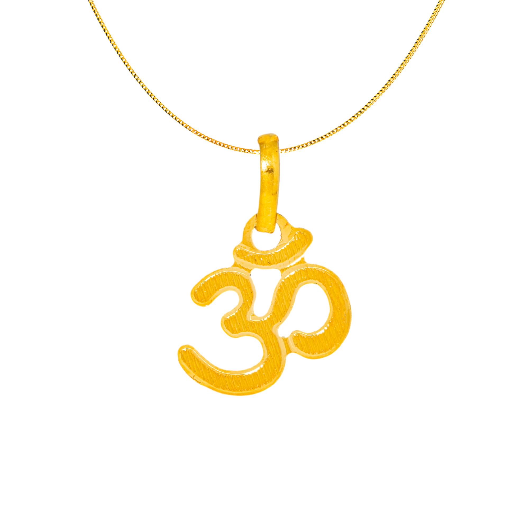 Crafted in radiant 22K yellow gold, this pendant offers a sophisticated interpretation of the sacred Om symbol. The classic silhouette ensures lasting style and wearability. Purchase this beautiful 22k gold Hindu pendant as an investment in timeless Indian gold jewelry.