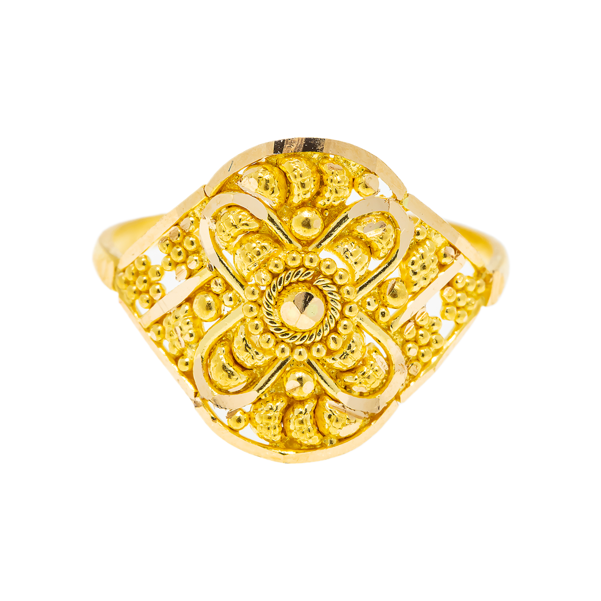 This 22k yellow gold ring for girls by Virani Jewelers is a symbol of love, heritage, and fine artistry.
