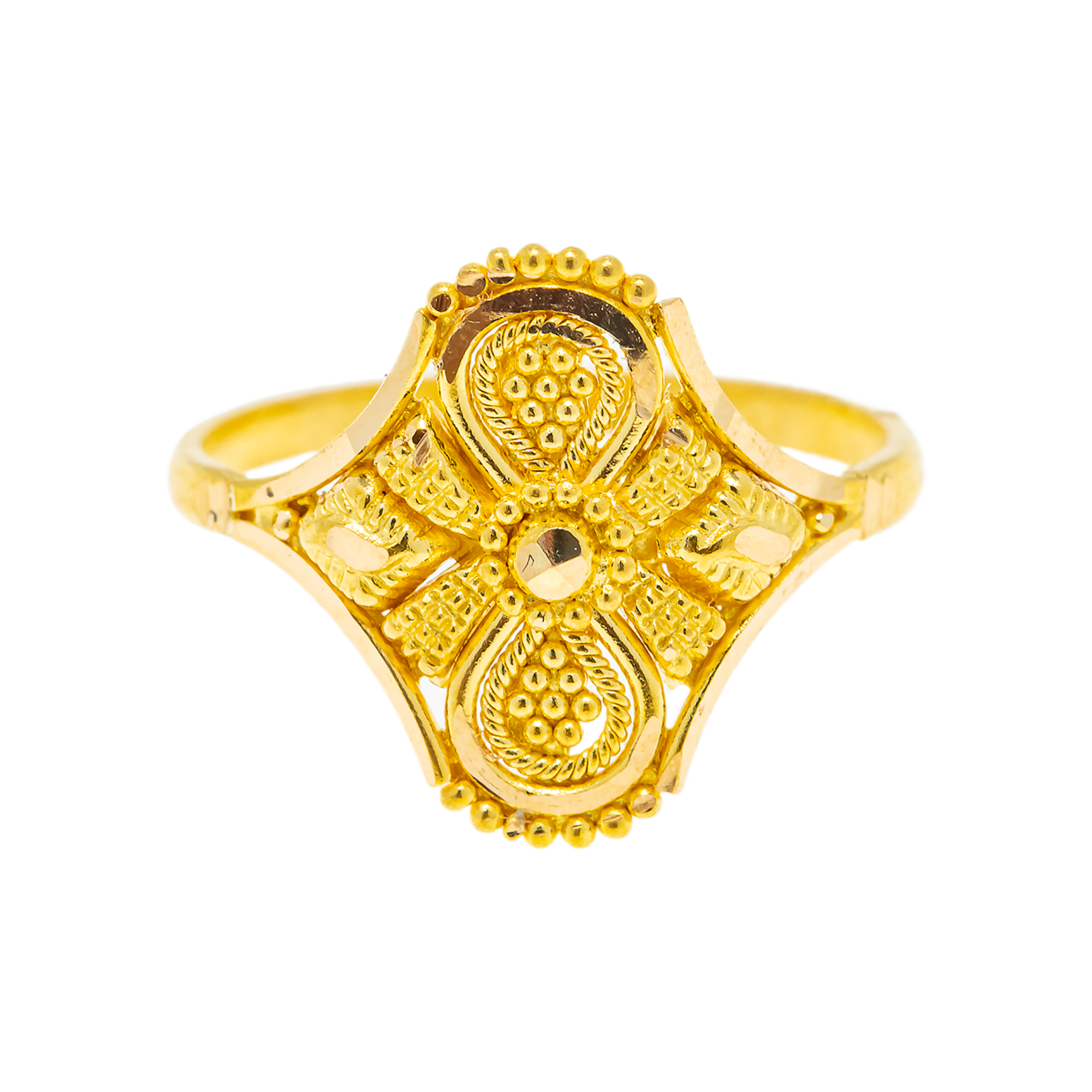| Virani Jewelers presents this classic 22k yellow gold ring for girls—an ideal blend of simplicity and sophistication. The rich yellow gold hue complements its traditional yet versatile design, making it perfect for her little fingers. This India gold ring pairs beautifully with festive attire or modern outfits. A testament to Indian gold jewelry craftsmanship, it’s a piece of 22k gold that shines for years to come. Gift it as statement of elegance. Features • 22k yellow gold Specifications • Minimum Width - 1.2 millimeters • Maximum Width - 11.2 millimeters • Length - 0.2 inch • Weight - 1.3 grams |