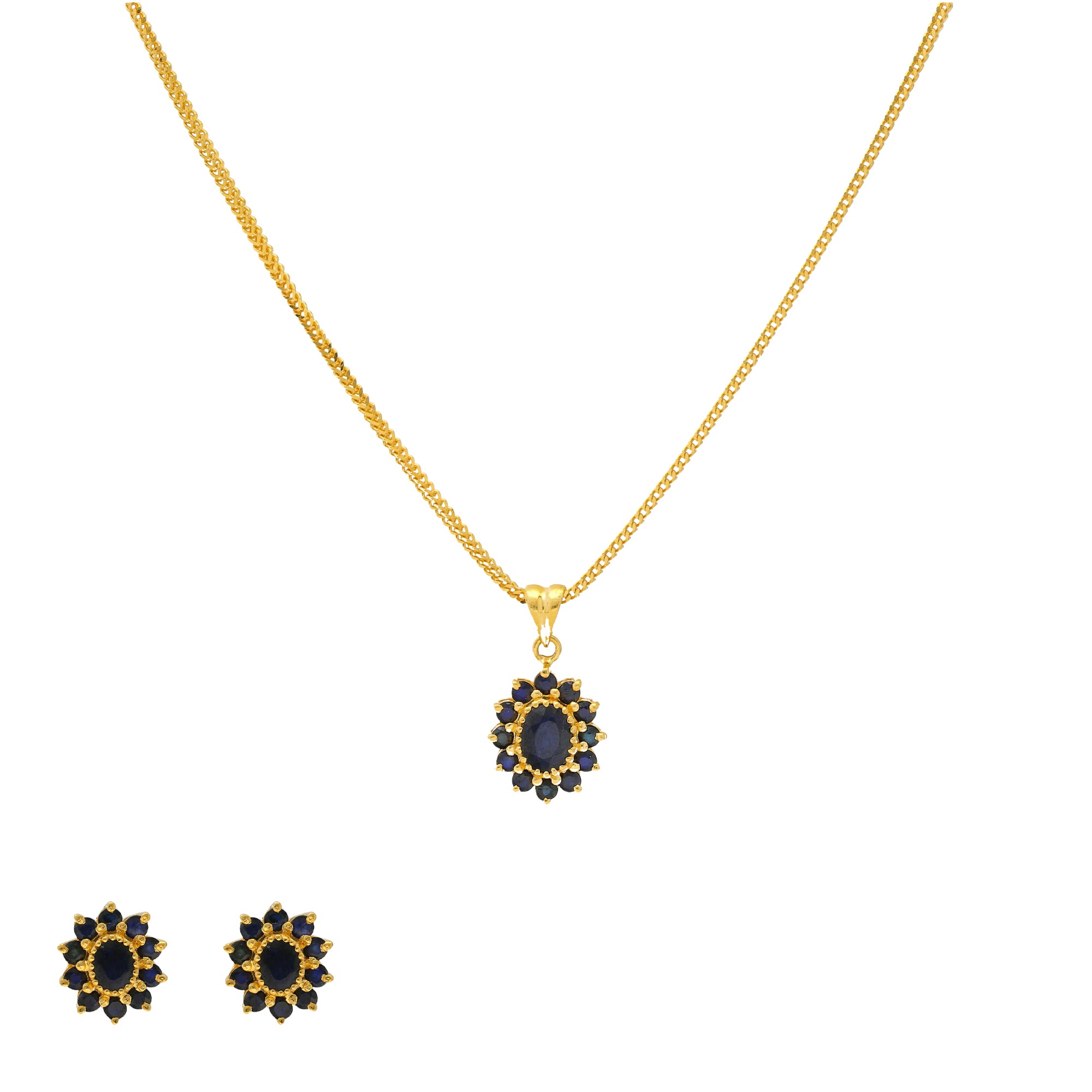 22K Yellow Gold & Sapphire Pendant Set (15gm)