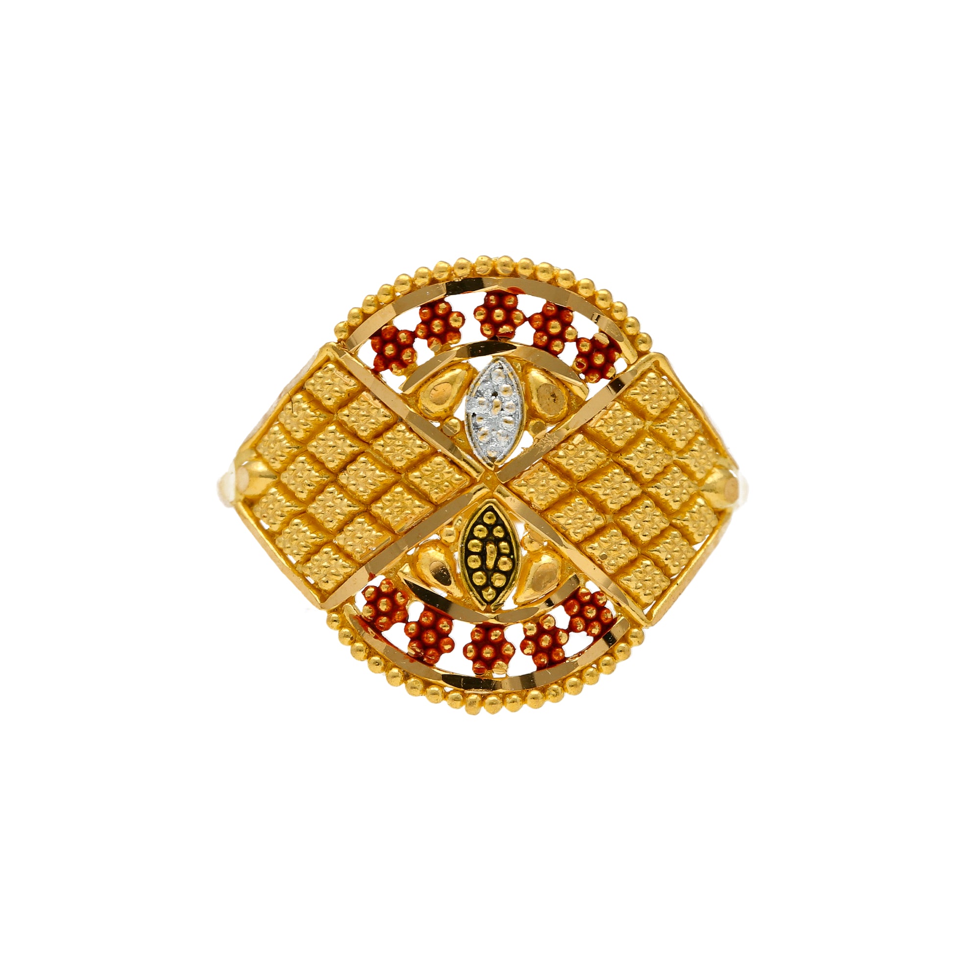 This 22K yellow gold shield ring for women has a culturally rich design and style that is perfect to wear with formal outfits or traditional wear.