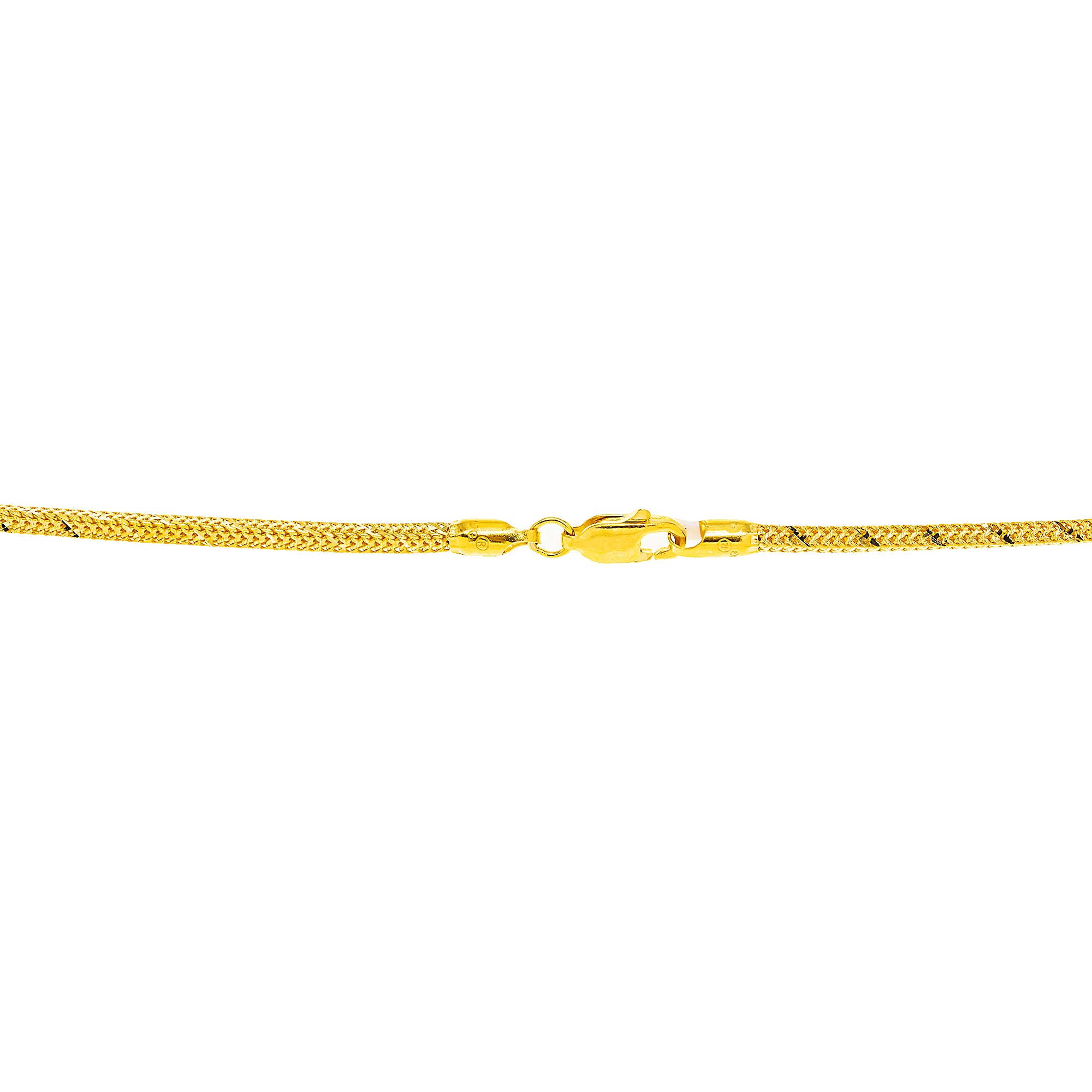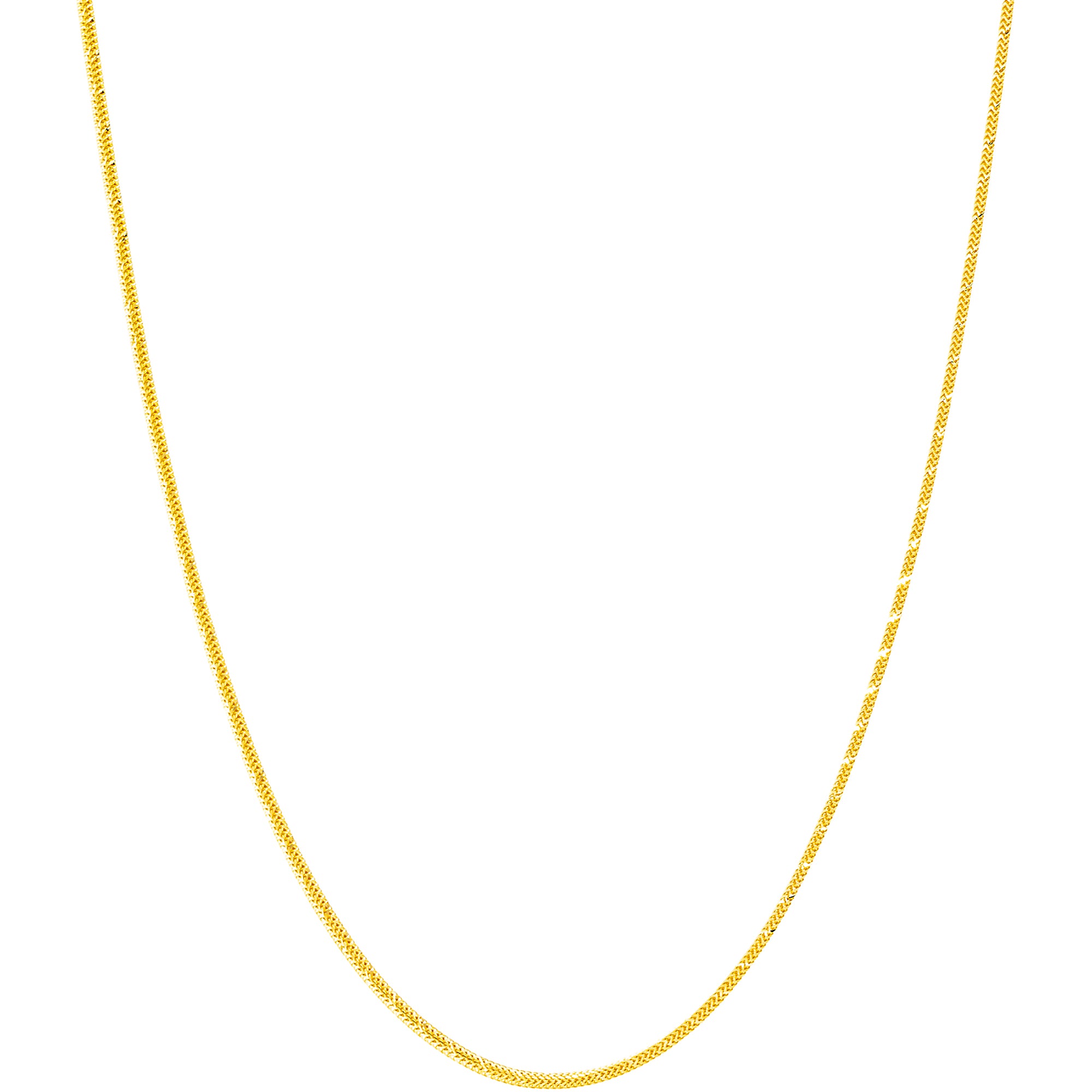 | Simple, elegant, and endlessly versatile, this 22K yellow gold chain by Virani Jewelers showcases the timeless appeal of Indian gold jewelry. Crafted in luminous 22K gold, the classic design offers a refined look that can be worn alone or layered with pendants and other chains. A staple of fine gold jewelry collections, this chain brings understated luxury and lasting value to both everyday wear and special occasions. Features • 22K yellow gold Specifications • Minimum Width - 1 millimeter • Maximum Width - 2 millimeters • Length - 24 inches • Weight - 21.1 grams |
