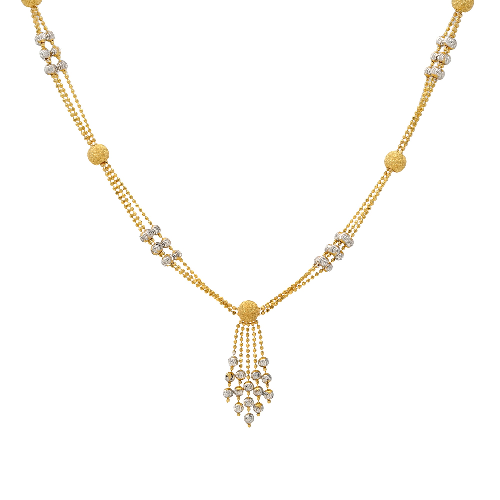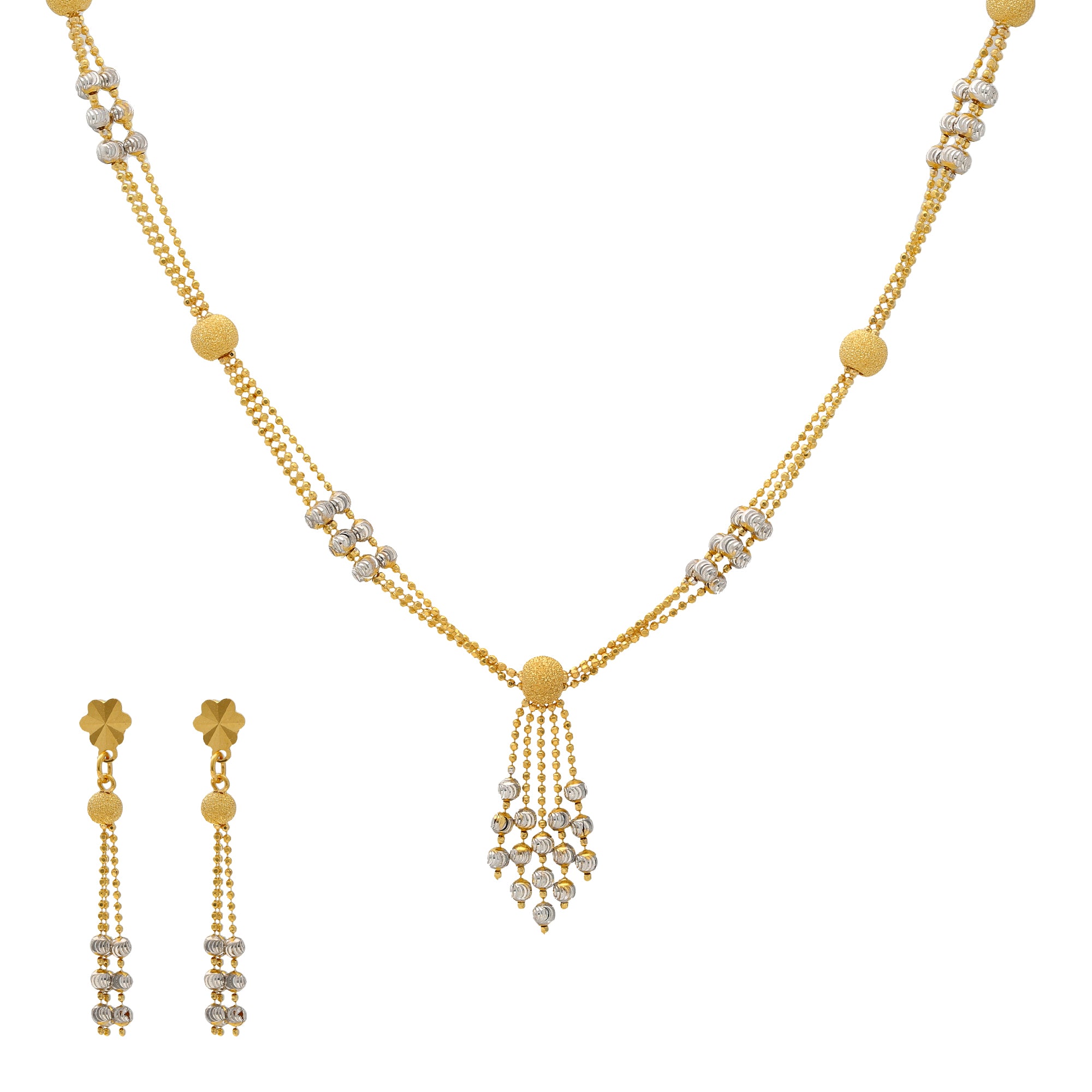 22K Yellow & White Gold Beaded Heart Necklace Set (14.2gm)