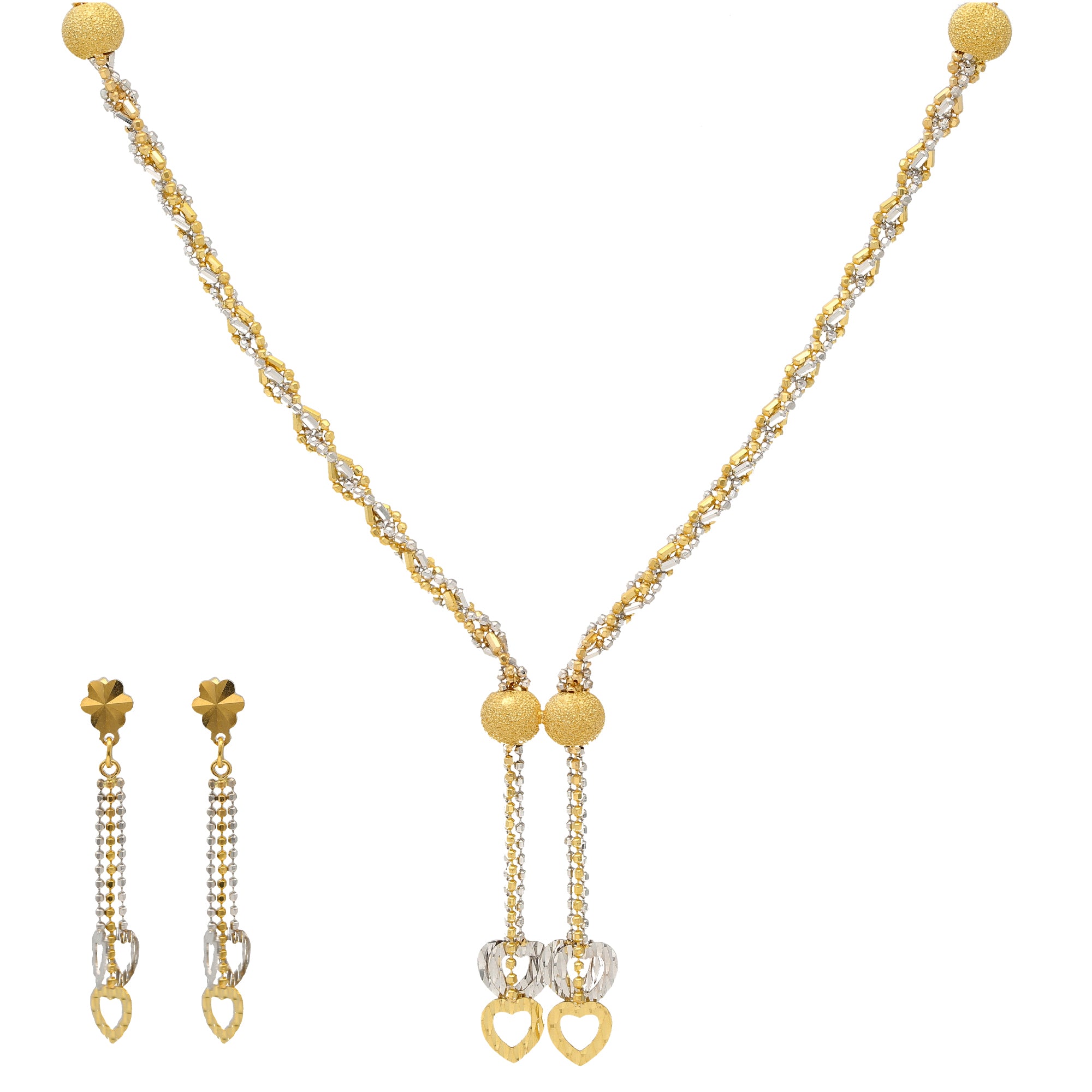 22K Yellow & White Gold Beaded Necklace Set (17.7gm)