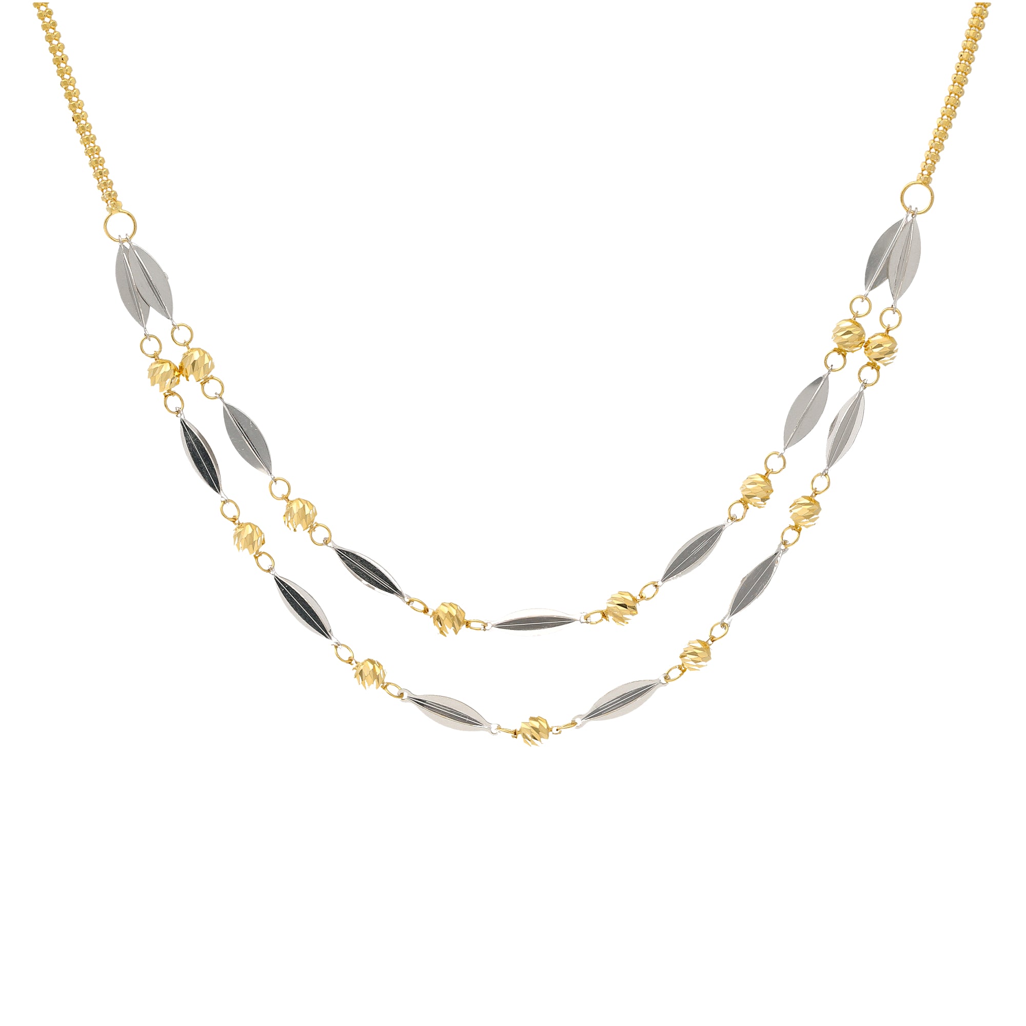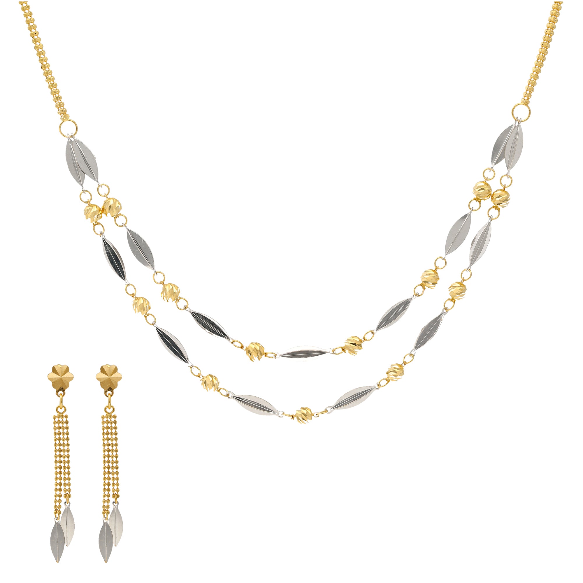 22K Yellow & White Gold Flat Bead Necklace Set (12.6gm)