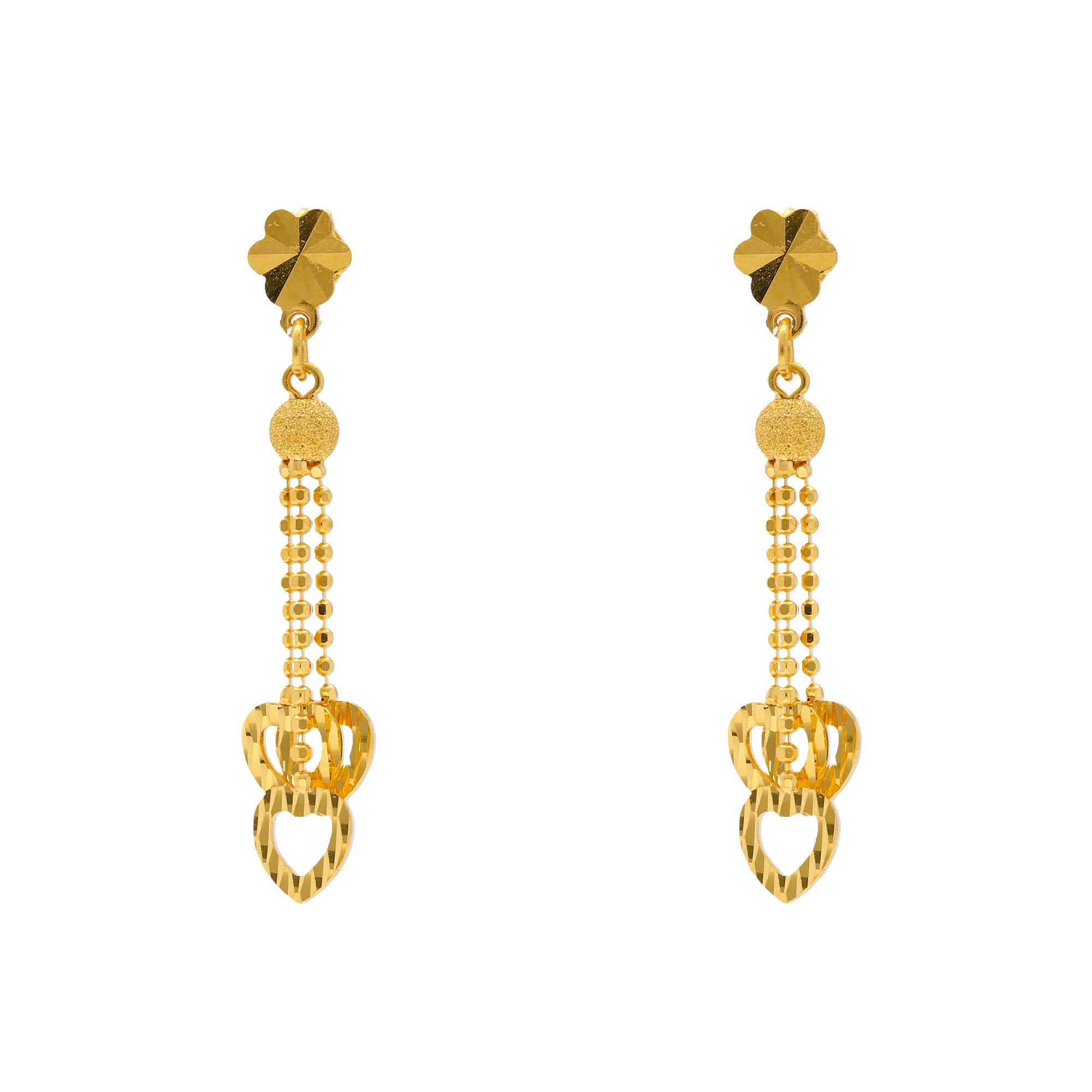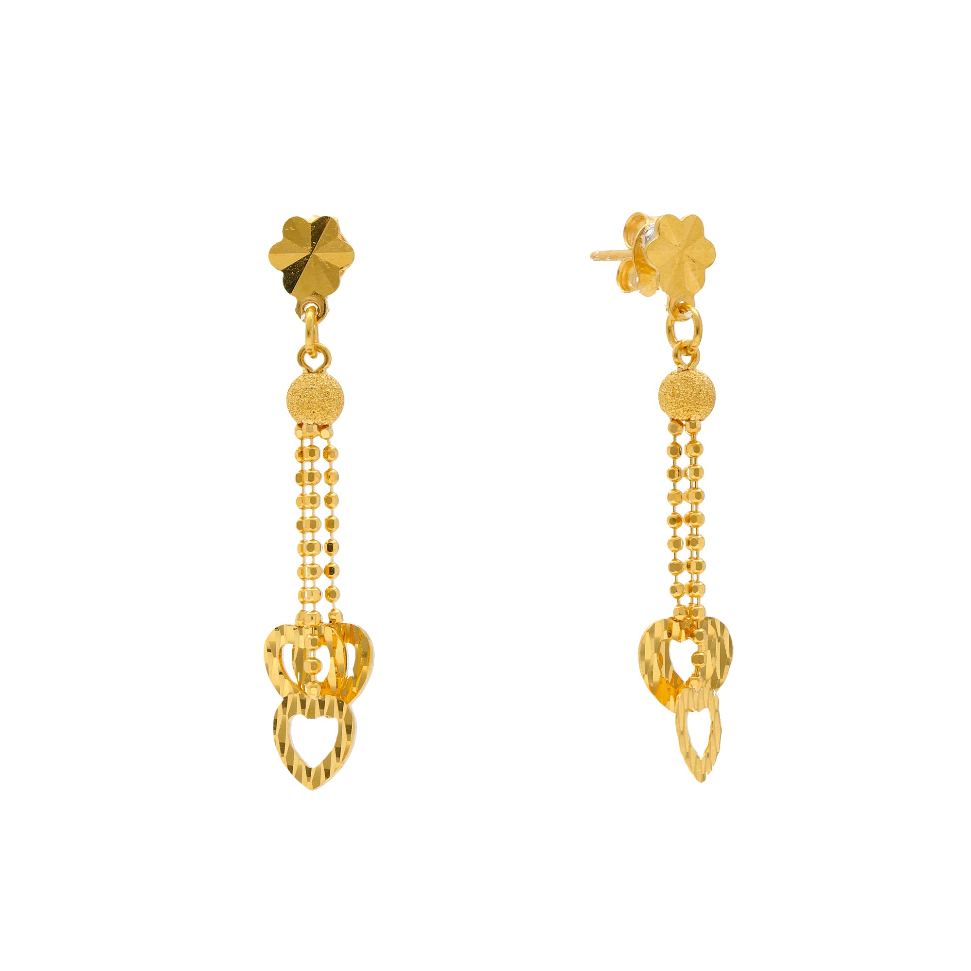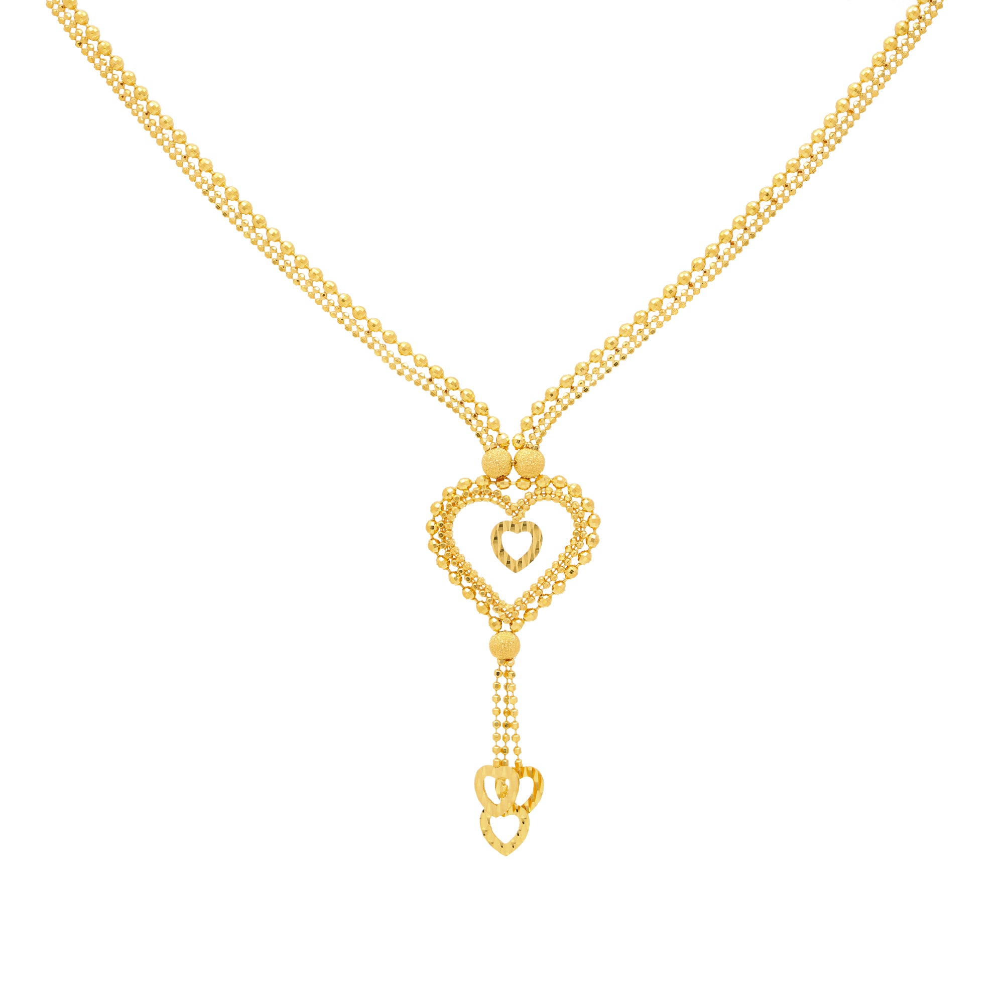 Our Beaded Heart Jewelry Set in 22k gold will add a radiant layer of shine to any look. The heart shaped style and elegant beaded on this 22k gold necklace and matching pair of earrings has a feminine design with minimal allure that is perfect to wear for both casual and formal occasions.