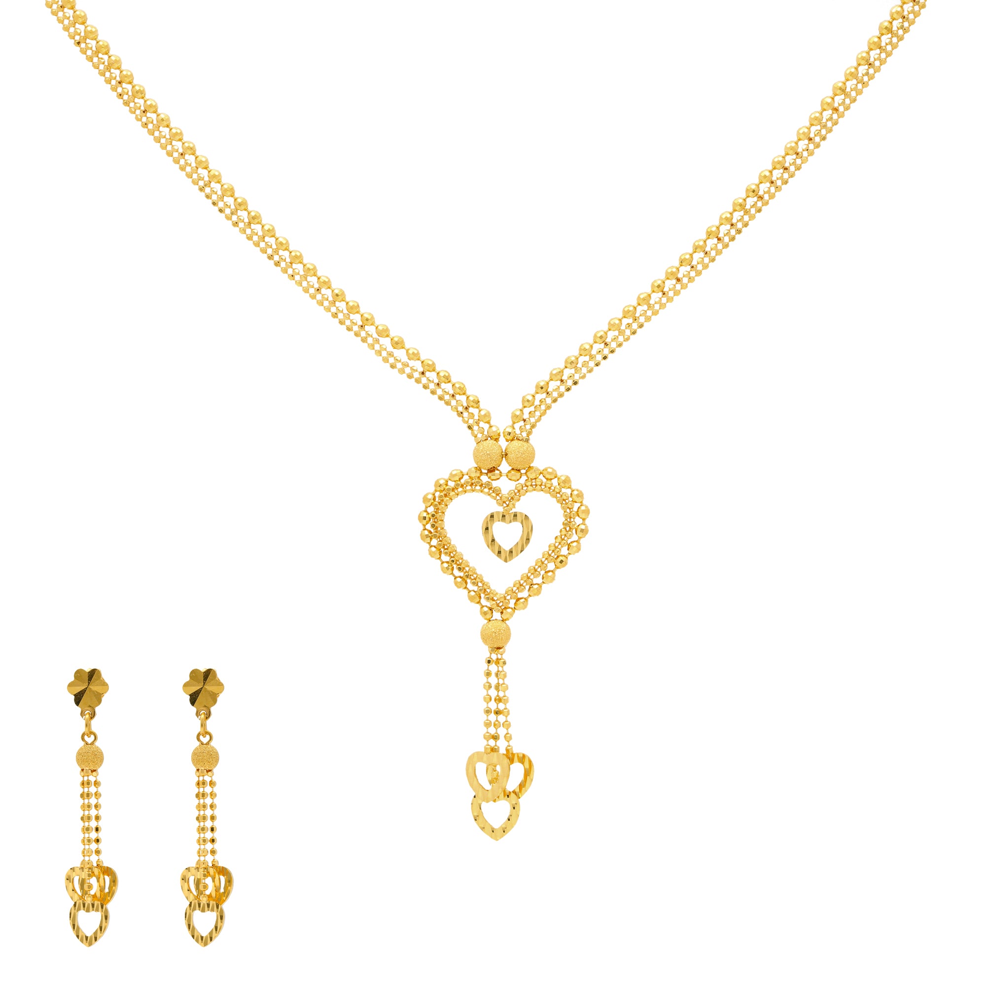 Beaded Heart Jewelry Set in 22k Yellow Gold