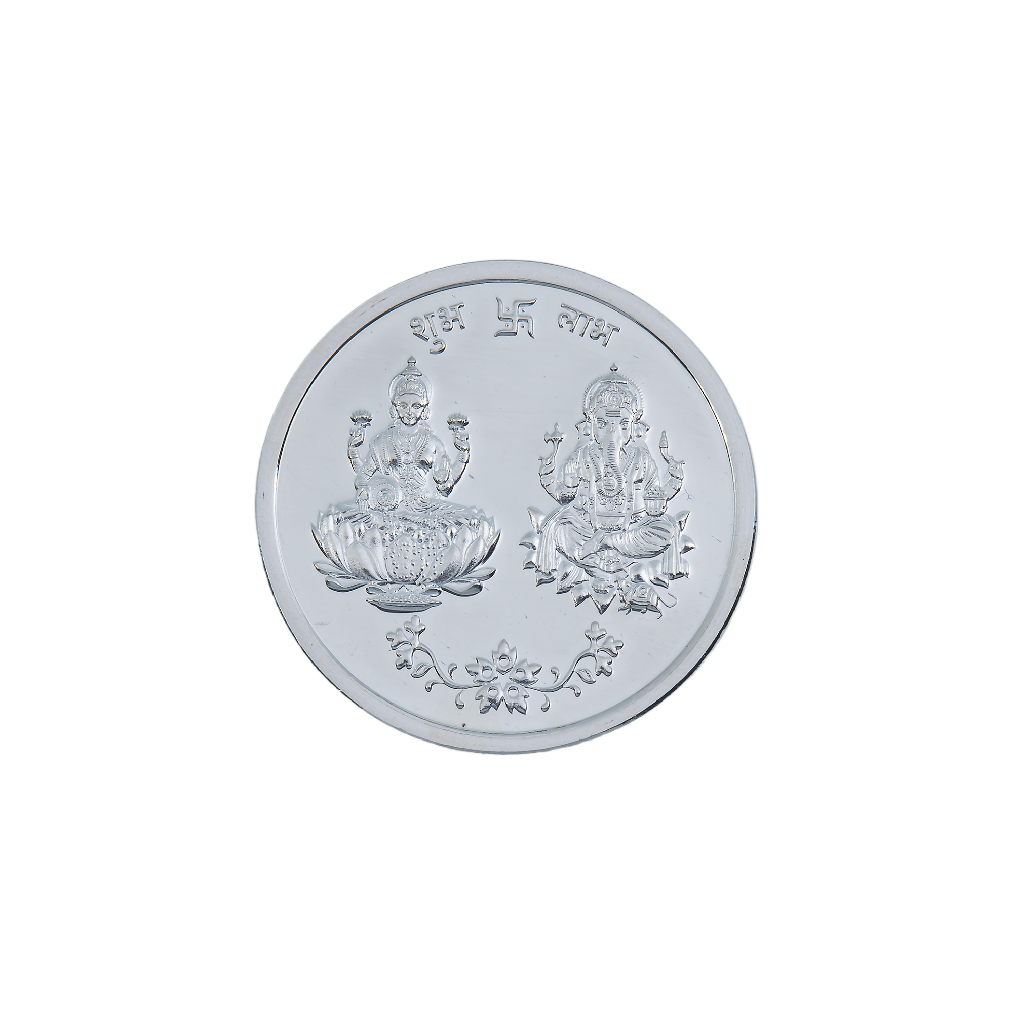 Laxmi & Ganesh Silver Coin with Sri engraved on the back, 5 grams